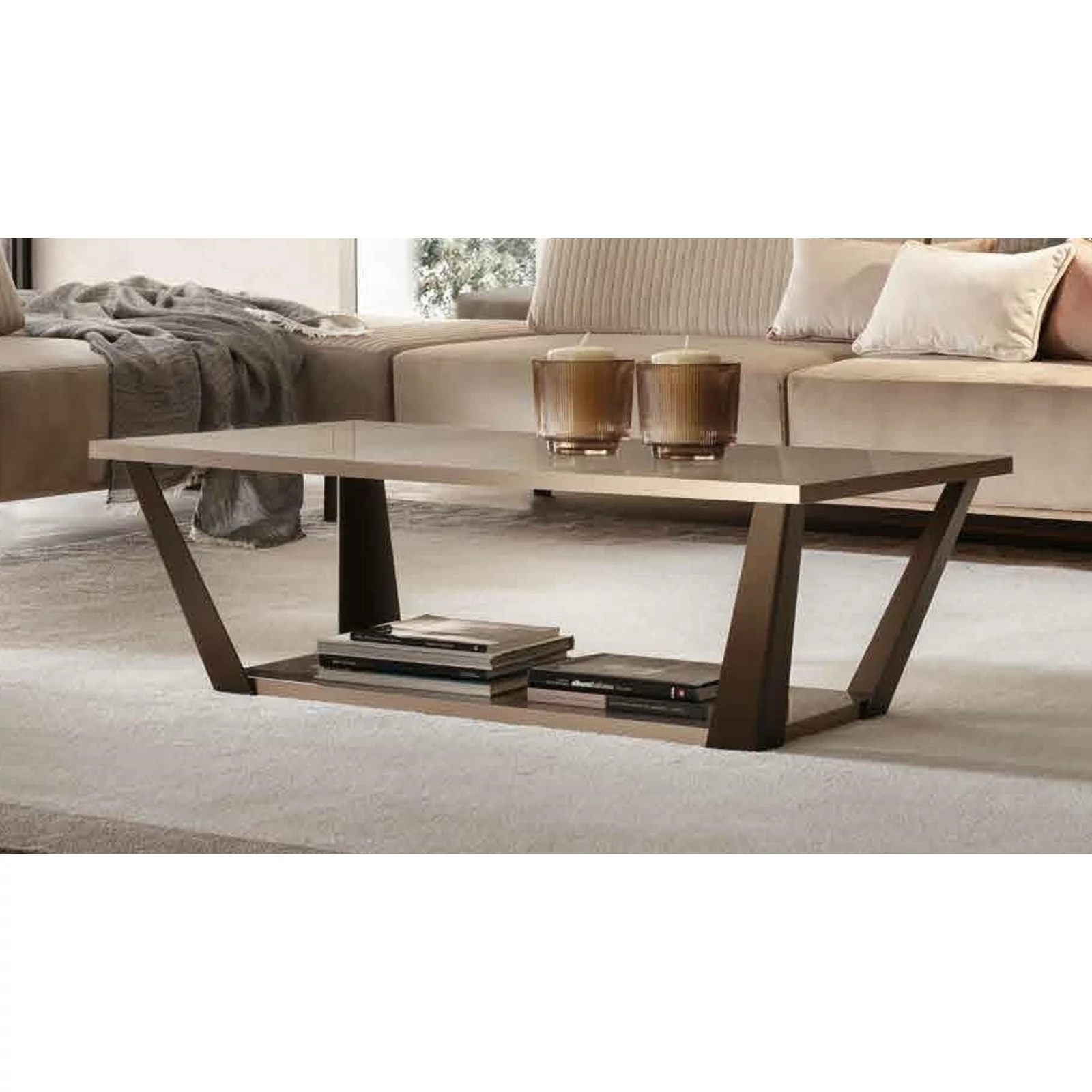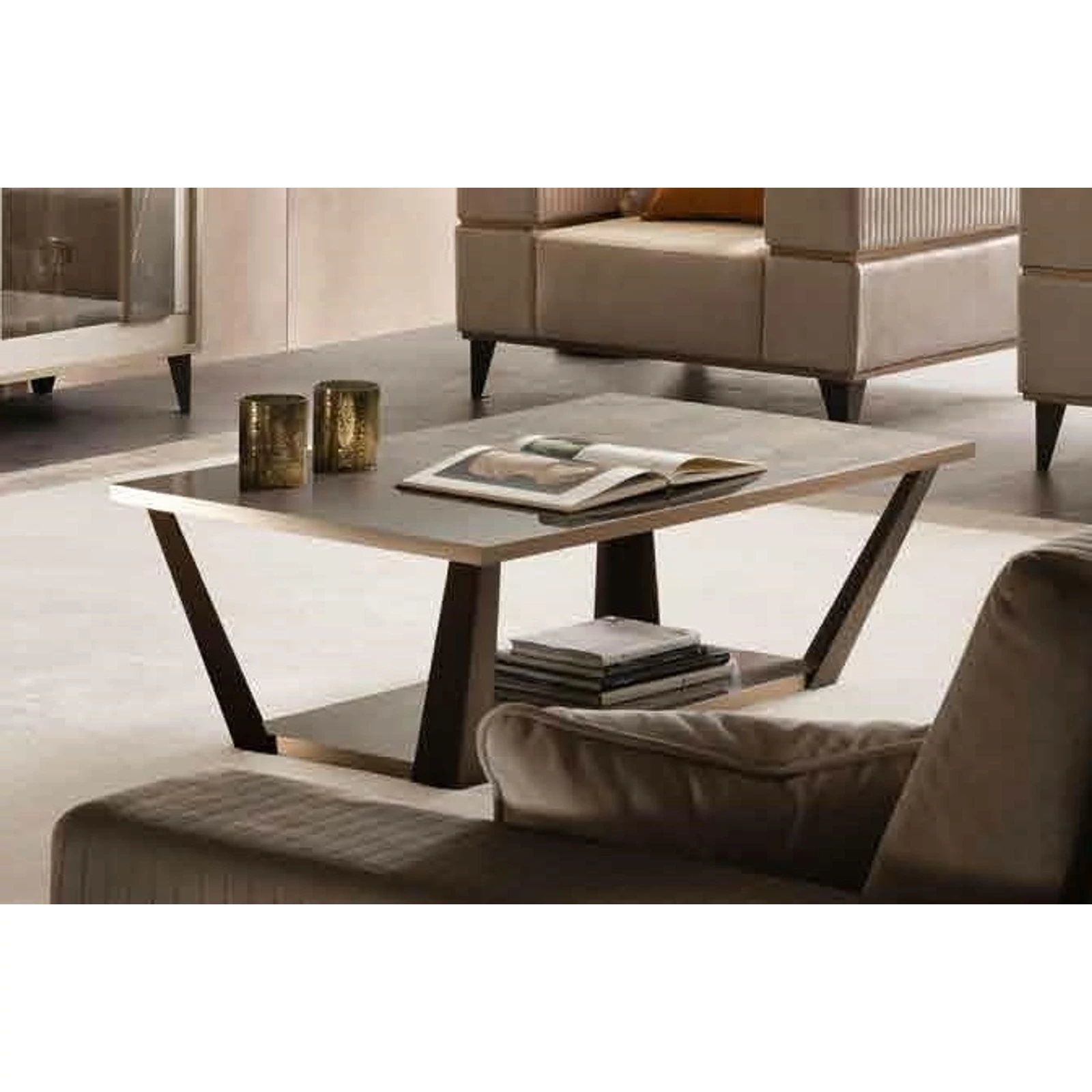 Az ArredoClassic Adora termékcsaládjának új kollekciója, az Ambra nappali-, étkező- és hálószobabútorokat is tartalmaz. Ez az utánozhatatlan modern stílusú bútorcsalád az olasz ízlést a maga teljes eleganciájában tükrözi. Az anyagok kontrasztja és a különböző felületek közötti méretbeli különbségek valódi jellemet kölcsönöznek minden egyes bútordarabnak. Kifinomult részletek jellemzik, amelyeket nem lehet nem észrevenni. A szilfából készült bútorok oldalsó lapjai elegánsan ellensúlyozzák az ajtók és fiókok márványos felületét, ezt pedig a szatén-bronz színű fogantyúk és lábak egészítik ki, igazán kifinomult módon. A bútordarabokon látható apró részletek, valamint az üvegfelületek tükröződései valódi ékszerként csillannak meg, ezzel fényességet kölcsönözve az egész garnitúrának. Ezeknek az esztétikai jellemzőknek köszönhetően a kollekció bármilyen környezetbe remekül illeszkedik. A márványos felületek csillogó hatása az asztallapon is visszaköszön, melynek szélei bronz színű anyaggal vannak keretezve, ami kiemeli a bútordarab körvonalait.