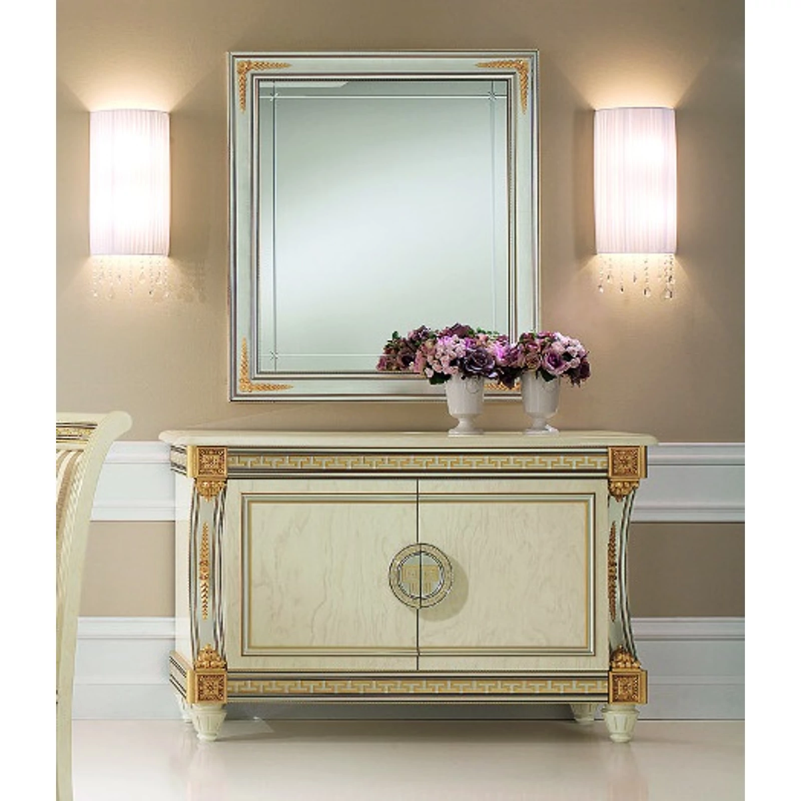 Az ArredoClassic Liberty fantázianevű kollekciója fényt, világosságot és eleganciát hoz otthonába, folyamatosan ámulatba ejtve mind használóit, mind a vendégeket. Gyönyörű krémszínű márványfelületeit csodálatra méltó összhanggal egészítik ki az ezüst részletek, melyeket az aranyszínű virágminták tesznek még különlegesebbé. Otthonát olyan luxushelyszínné varázsolja a modellsorozat minden darabja, melyben minden eltöltött perc gyönyörködtet. Válogassa össze azt a szettet, amely igazán Önhöz illik, és egy műremekkel lesz gazdagabb! A Liberty családban található hálószoba, nappali, étkező és ülőbútor is, tekintse meg mindet!