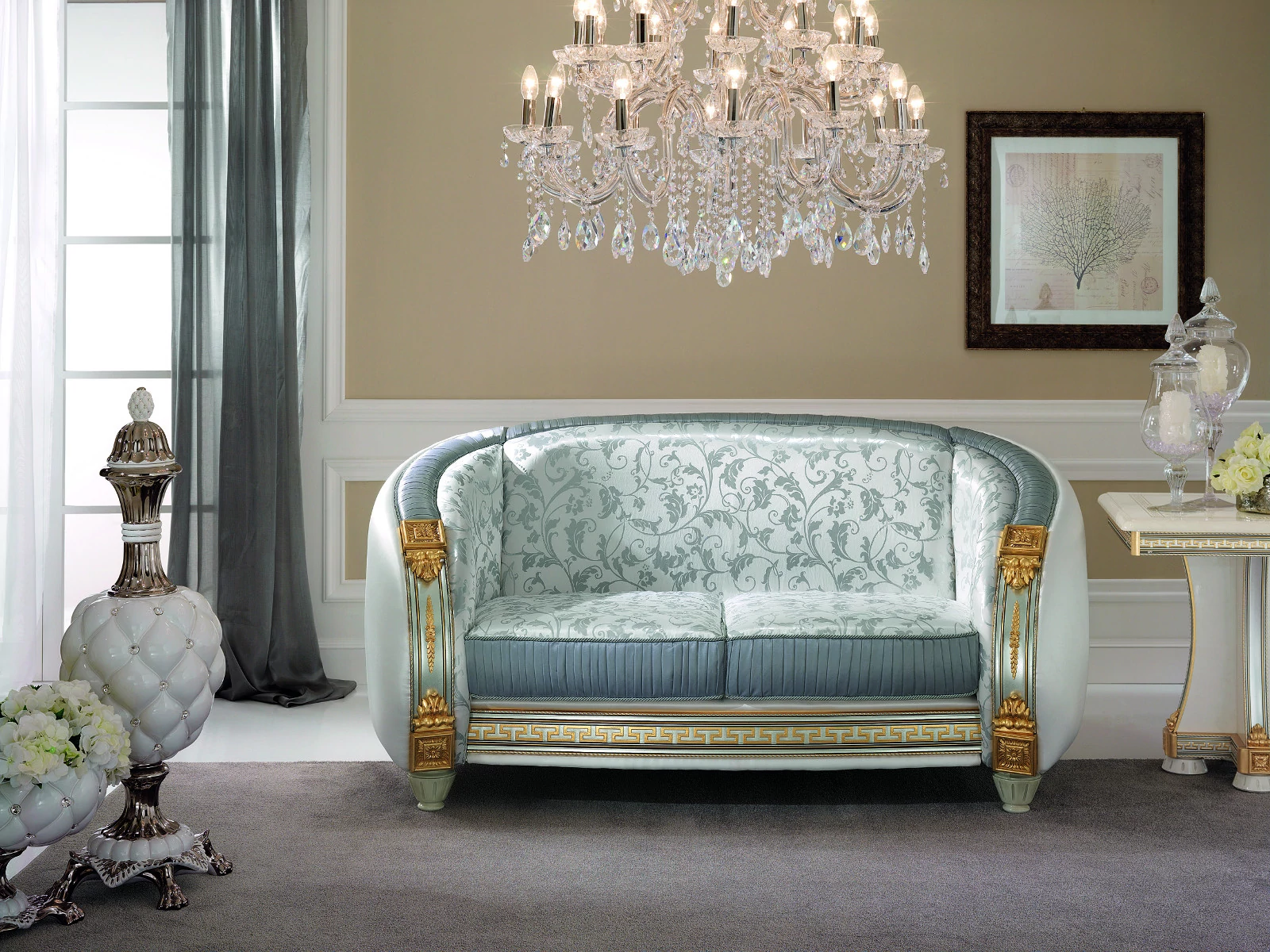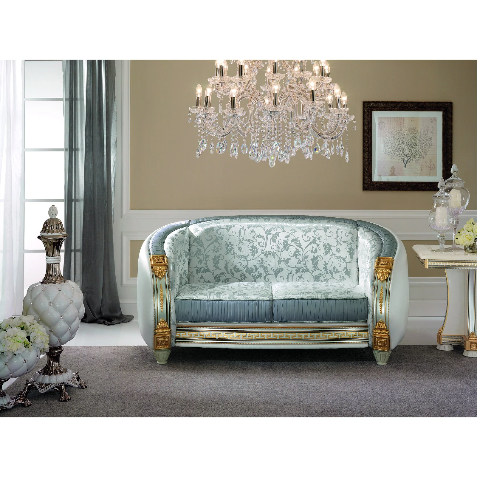Az ArredoClassic Liberty fantázianevű kollekciója fényt, világosságot és eleganciát hoz otthonába, folyamatosan ámulatba ejtve mind használóit, mind a vendégeket. Gyönyörű krémszínű márványfelületeit csodálatra méltó összhanggal egészítik ki az ezüst részletek, melyeket az aranyszínű virágminták tesznek még különlegesebbé. Otthonát olyan luxushelyszínné varázsolja a modellsorozat minden darabja, melyben minden eltöltött perc gyönyörködtet. Válogassa össze azt a szettet, amely igazán Önhöz illik, és egy műremekkel lesz gazdagabb! A Liberty családban található hálószoba, nappali, étkező és ülőbútor is, tekintse meg mindet!
