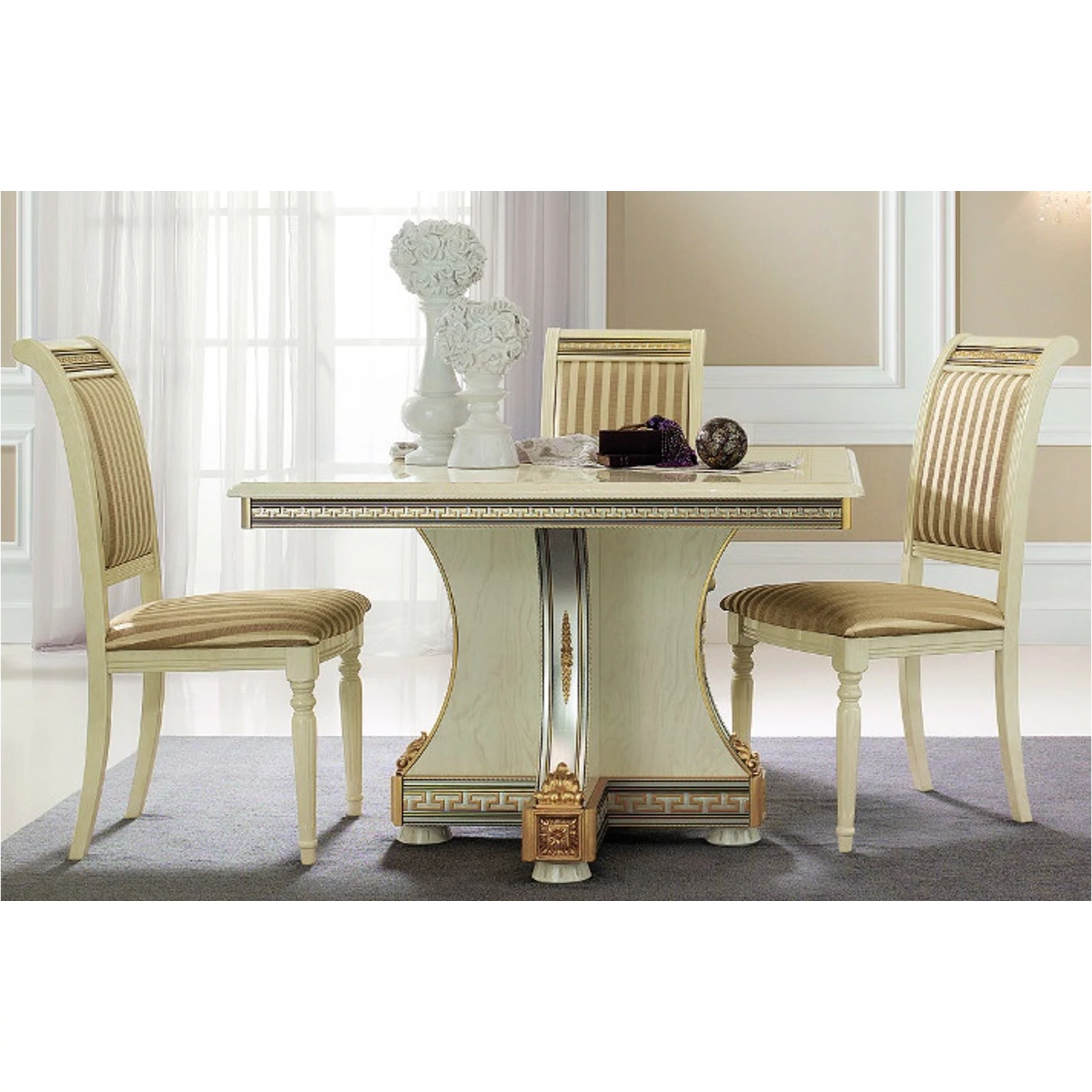 Az ArredoClassic Liberty fantázianevű kollekciója fényt, világosságot és eleganciát hoz otthonába, folyamatosan ámulatba ejtve mind használóit, mind a vendégeket. Gyönyörű krémszínű márványfelületeit csodálatra méltó összhanggal egészítik ki az ezüst részletek, melyeket az aranyszínű virágminták tesznek még különlegesebbé. Otthonát olyan luxushelyszínné varázsolja a modellsorozat minden darabja, melyben minden eltöltött perc gyönyörködtet. Válogassa össze azt a szettet, amely igazán Önhöz illik, és egy műremekkel lesz gazdagabb! A Liberty családban található hálószoba, nappali, étkező és ülőbútor is, tekintse meg mindet!