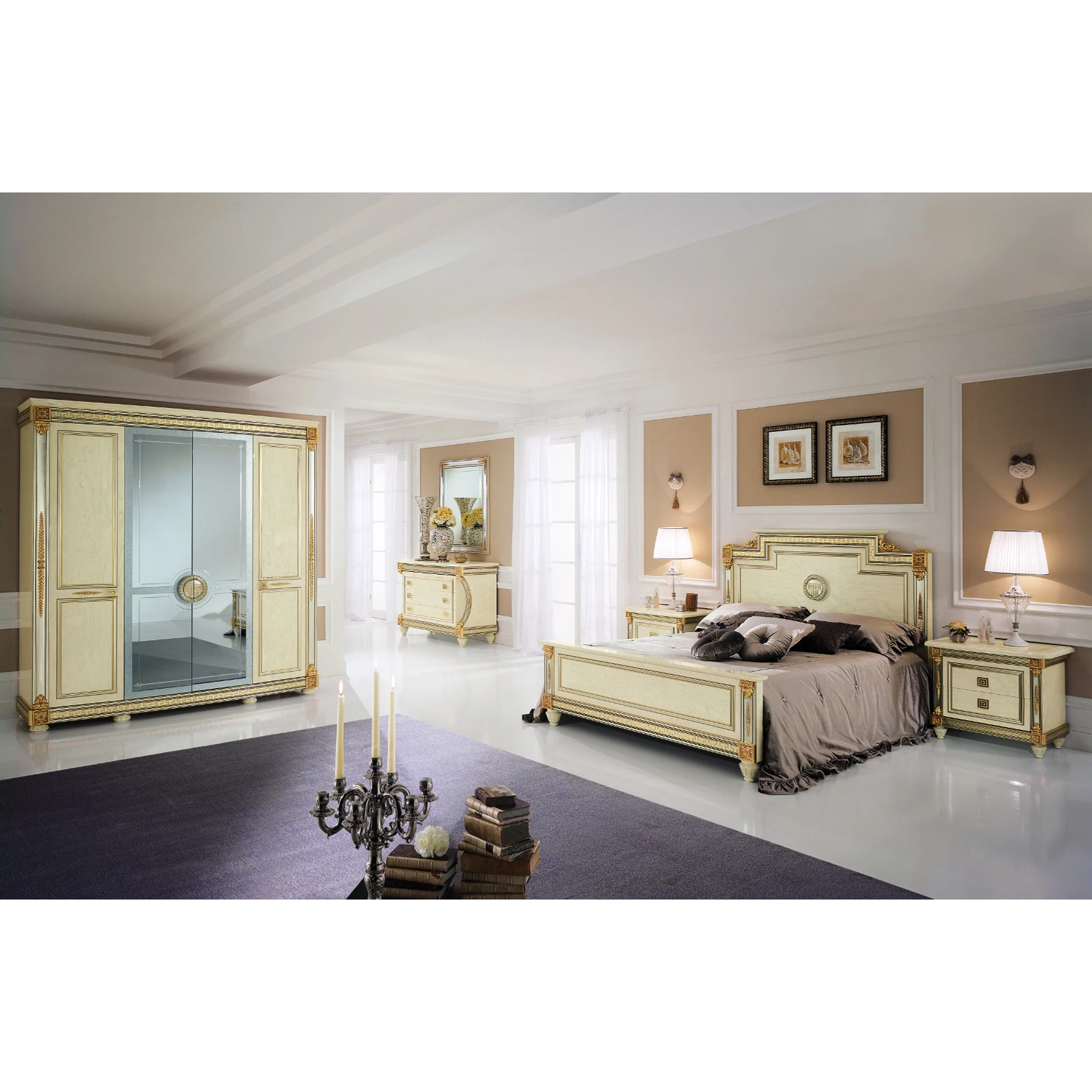 AC Liberty hálószoba - bézs, 180x200 cm ággyal, 6-ajtós szekrénnyel