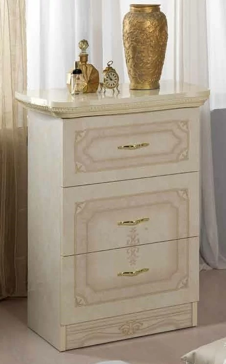 Ennek a komplett hálószobának minden egyes eleme a szépséget és az élvezetet dicsőíti. A hatalmas tükör, a lekerekített ágy és a díszítések tisztasága olyasfajta szépérzékről árulkodik, amely a legszenvedélyesebb és legeredetibb olaszságra jellemző.