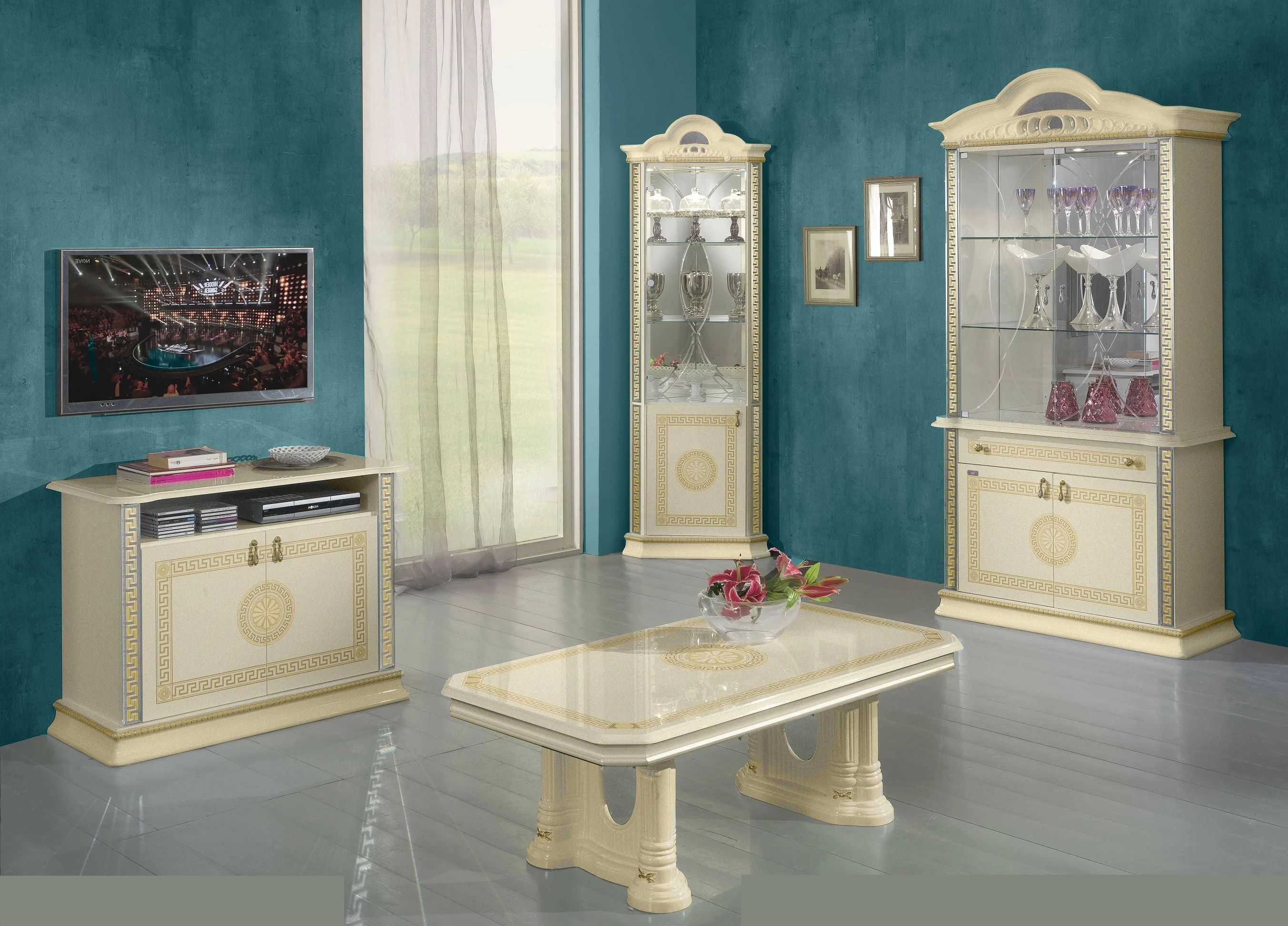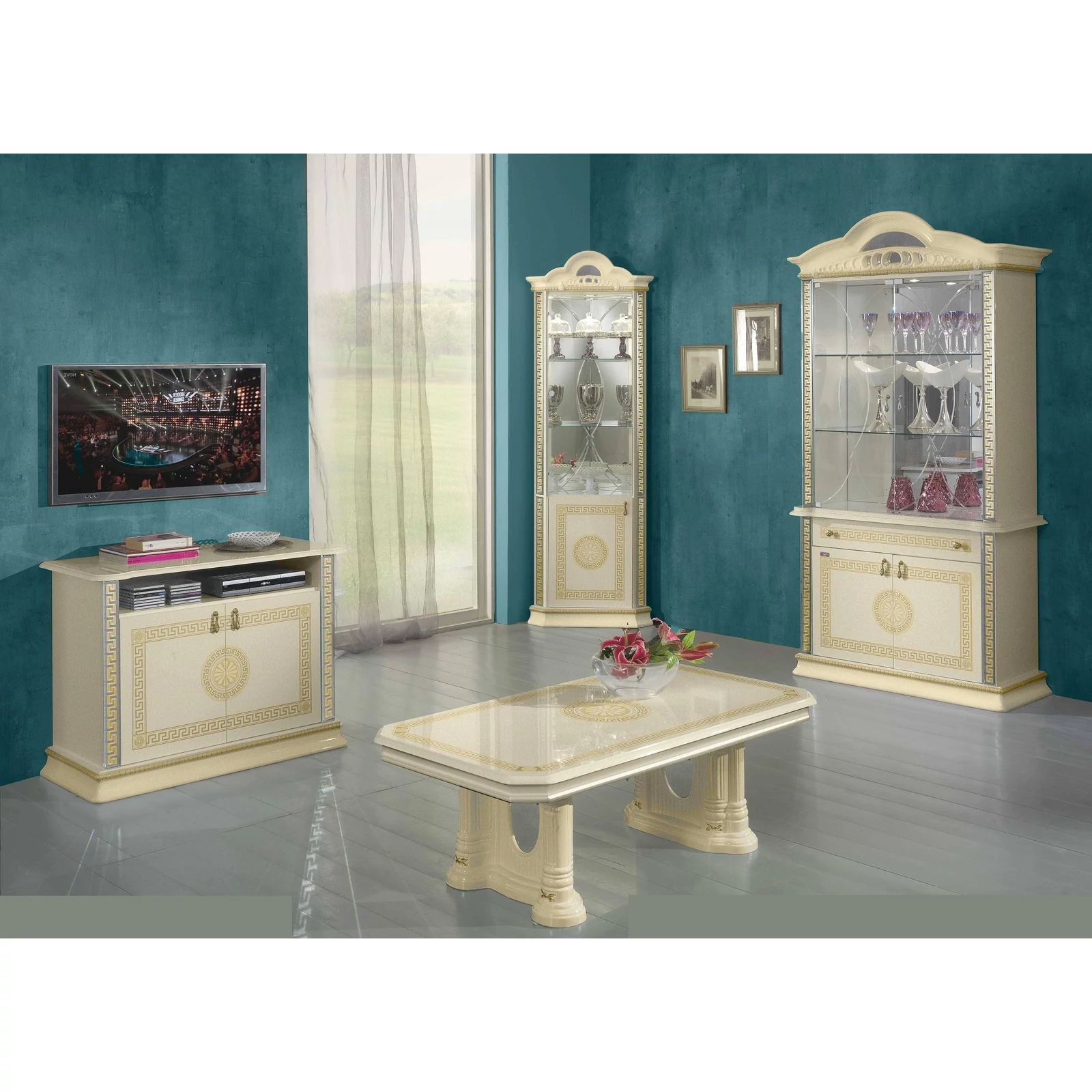 - BC Venus Day 2-üvegajtós tálalószekrény - bézs: 1020mm x 450mm x 2130mm