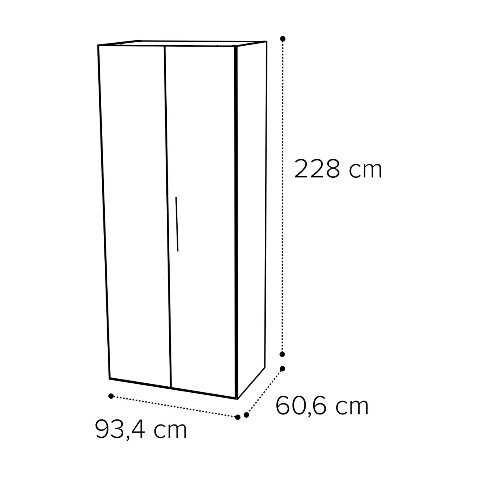 - 2 ajtós változat: 93,4×60,6×228 cm