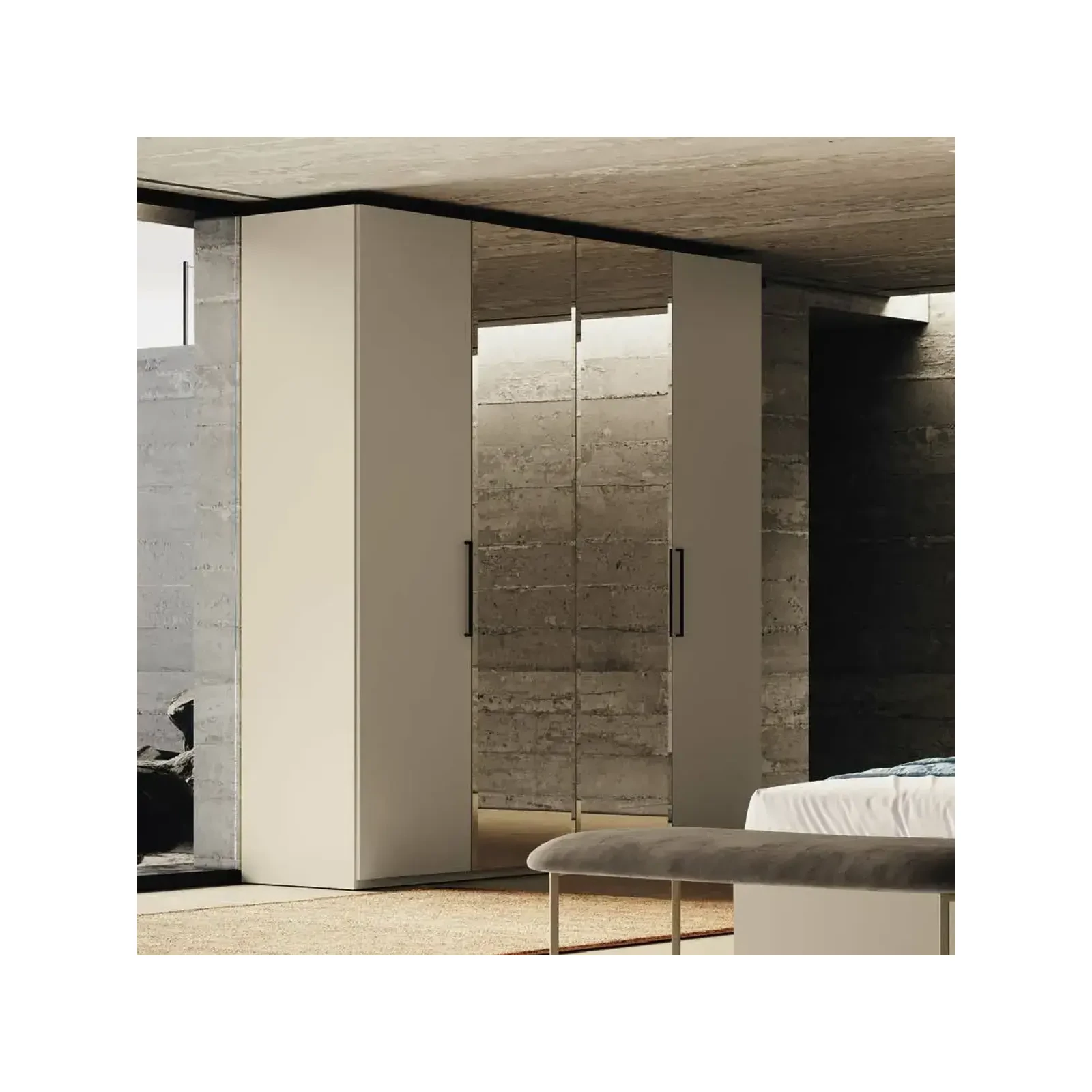 Bézs gardróbszekrény, 4 ajtós, 2 tükörrel – CA Essenza