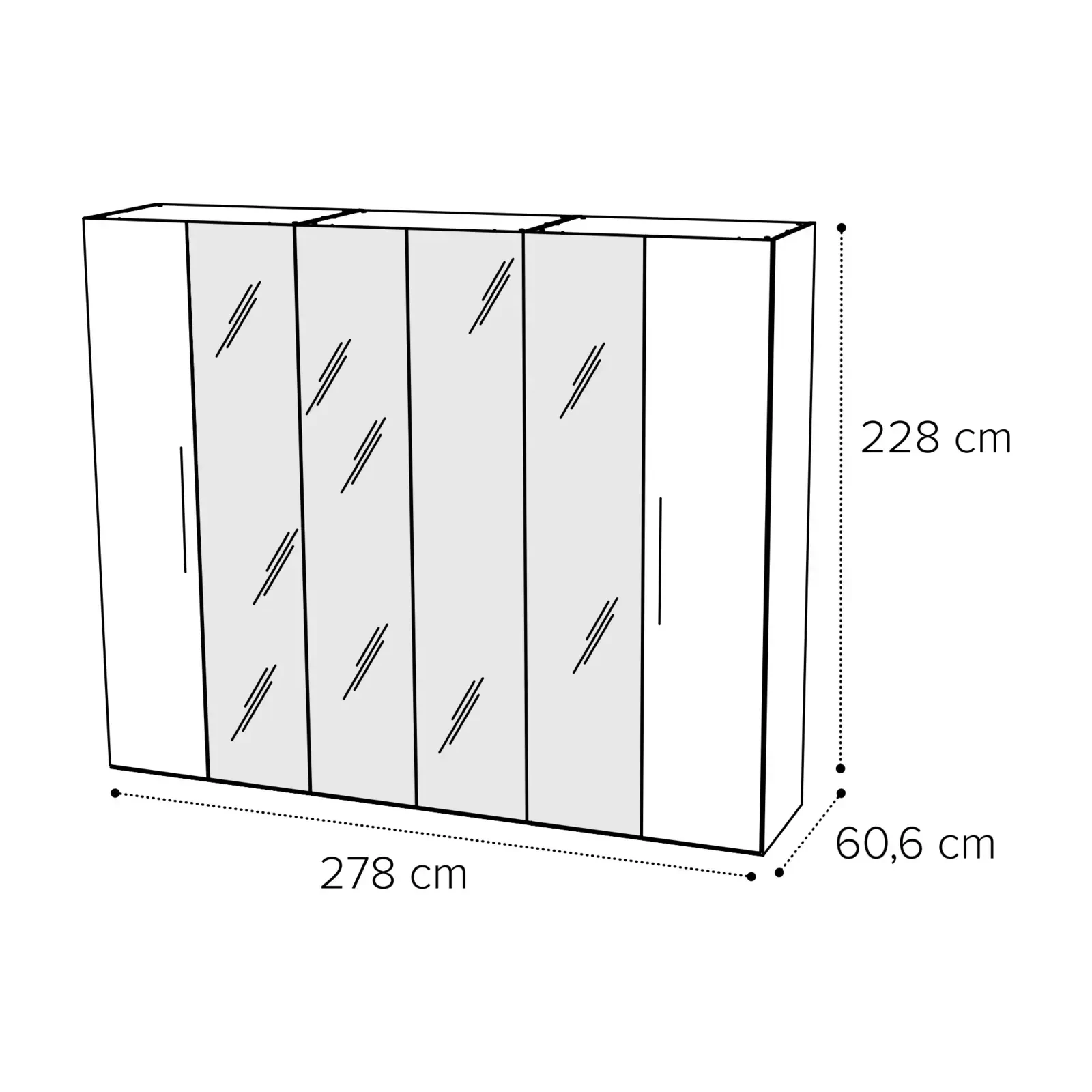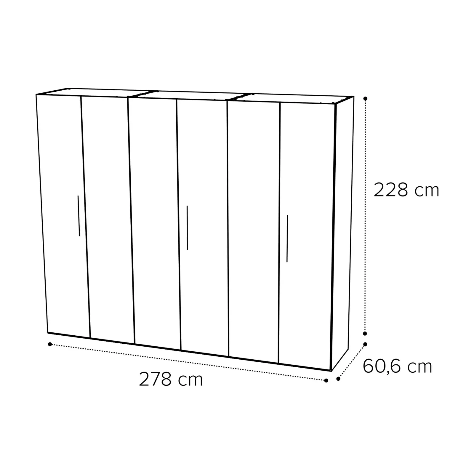 - 6 ajtós változat: 278×60,6×228 cm