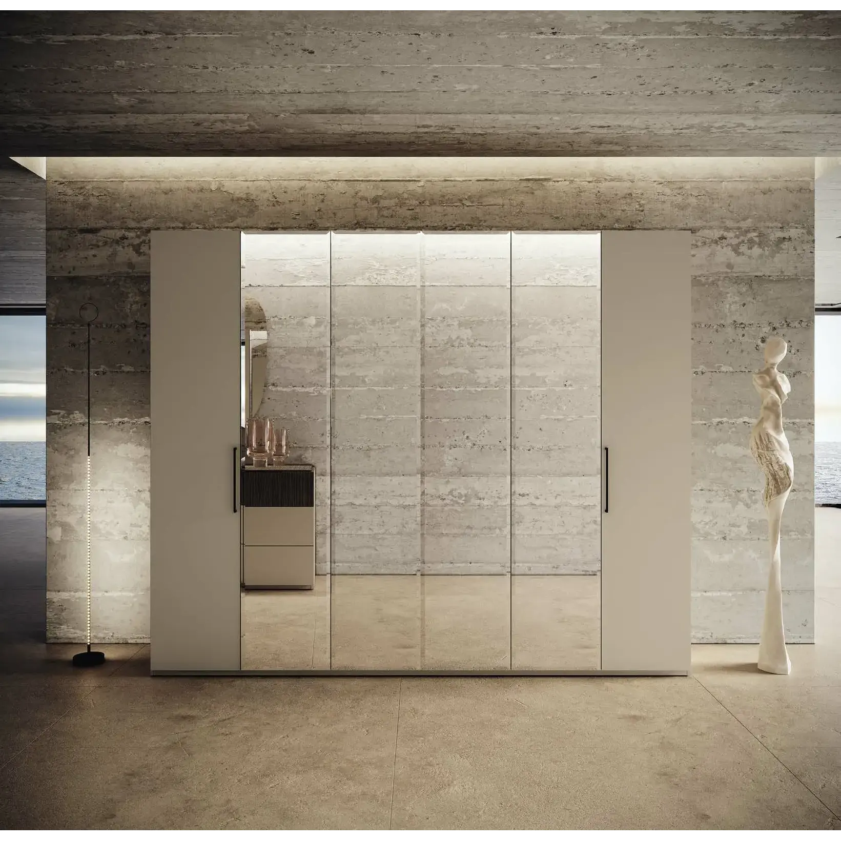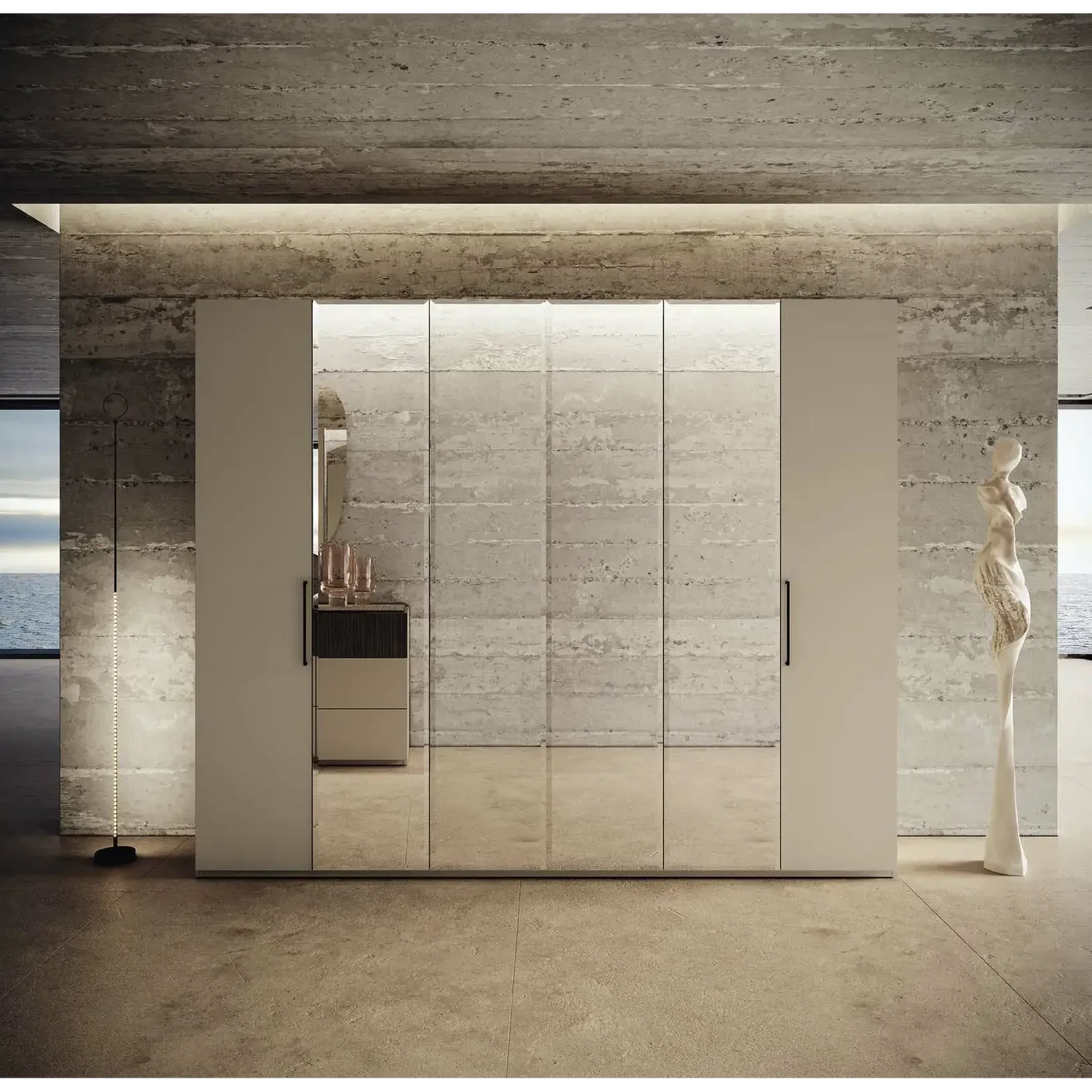 Bézs gardróbszekrény, 6 ajtós, 4 tükörrel – CA Essenza