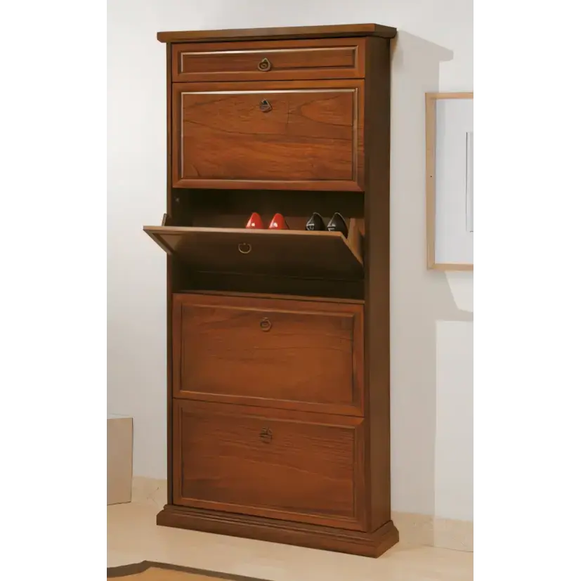 Morello rusztikus stílusú cipősszekrény 4 lenyíló ajtóval, 1 fiókkal