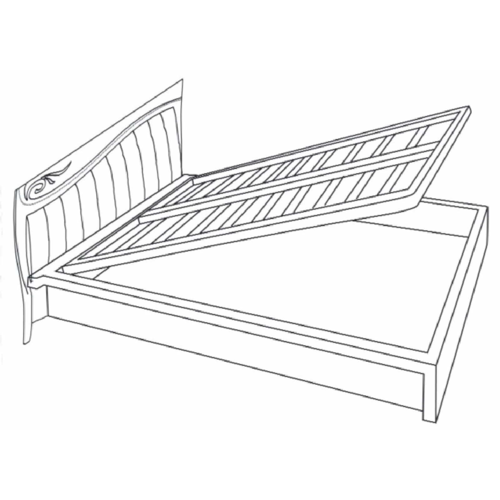 Az ágy fejvége faszerű anyagból, az oldaldeszkák fából készültek, fehér színű lakkozással, nyílt pórusú kőrisfa részletekkel. A fejvég középső paneljének szövetborítású változata párnázott, ökobőrrel bevont panel, a faváltozat pedig nyílt pórusú kőrisfa kivitelezésű panel.