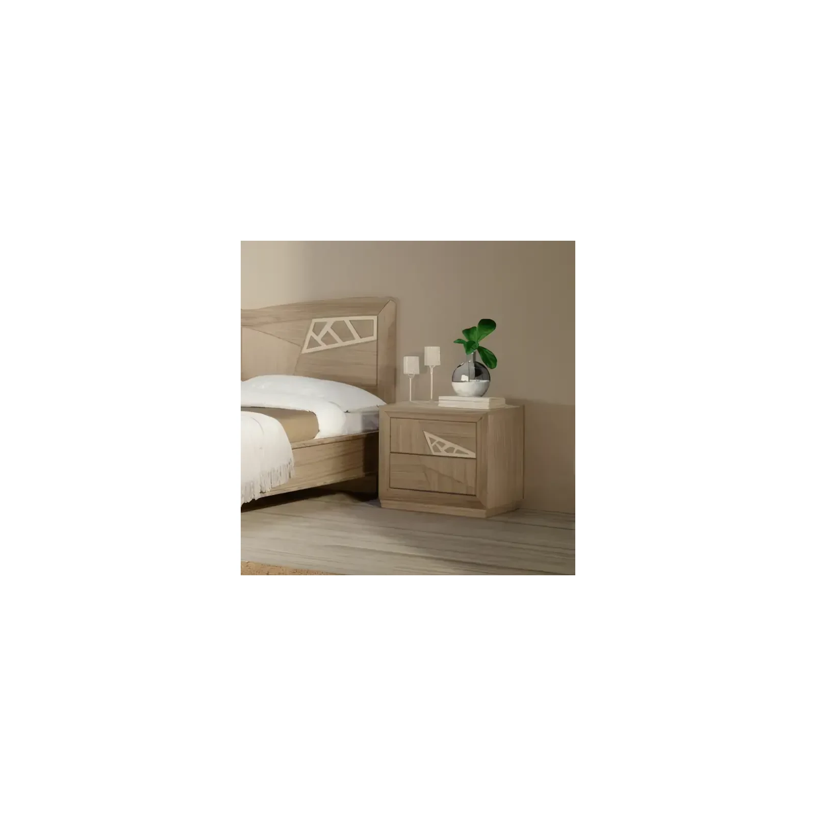 Morello modern stílusú éjjeliszekrény 2 fiókkal, háromszöges mintával
