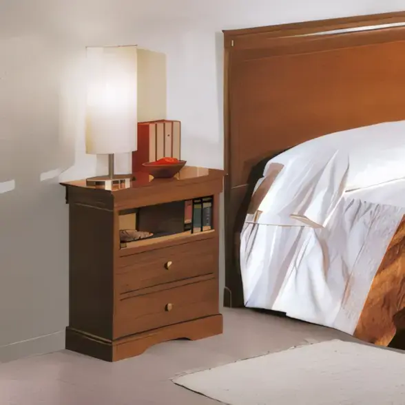 Morello rusztikus stílusú éjjeliszekrény 2 fiókkal, polccal és titkos rekesszel, lajos fülöp stílusú