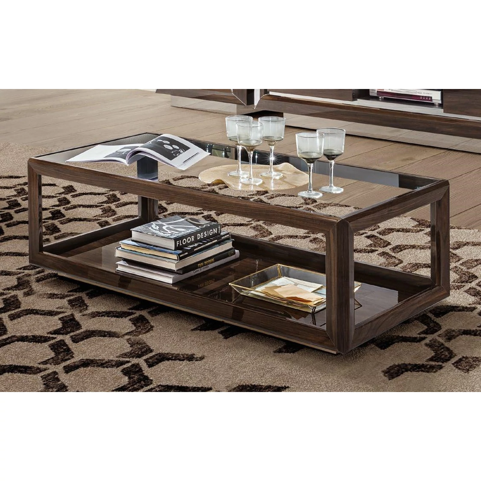 Üvegpolcok: 8 mm-es átlátszó, L-alakú függő polcelválasztó: 6 mm-es füstös edzett üveg.