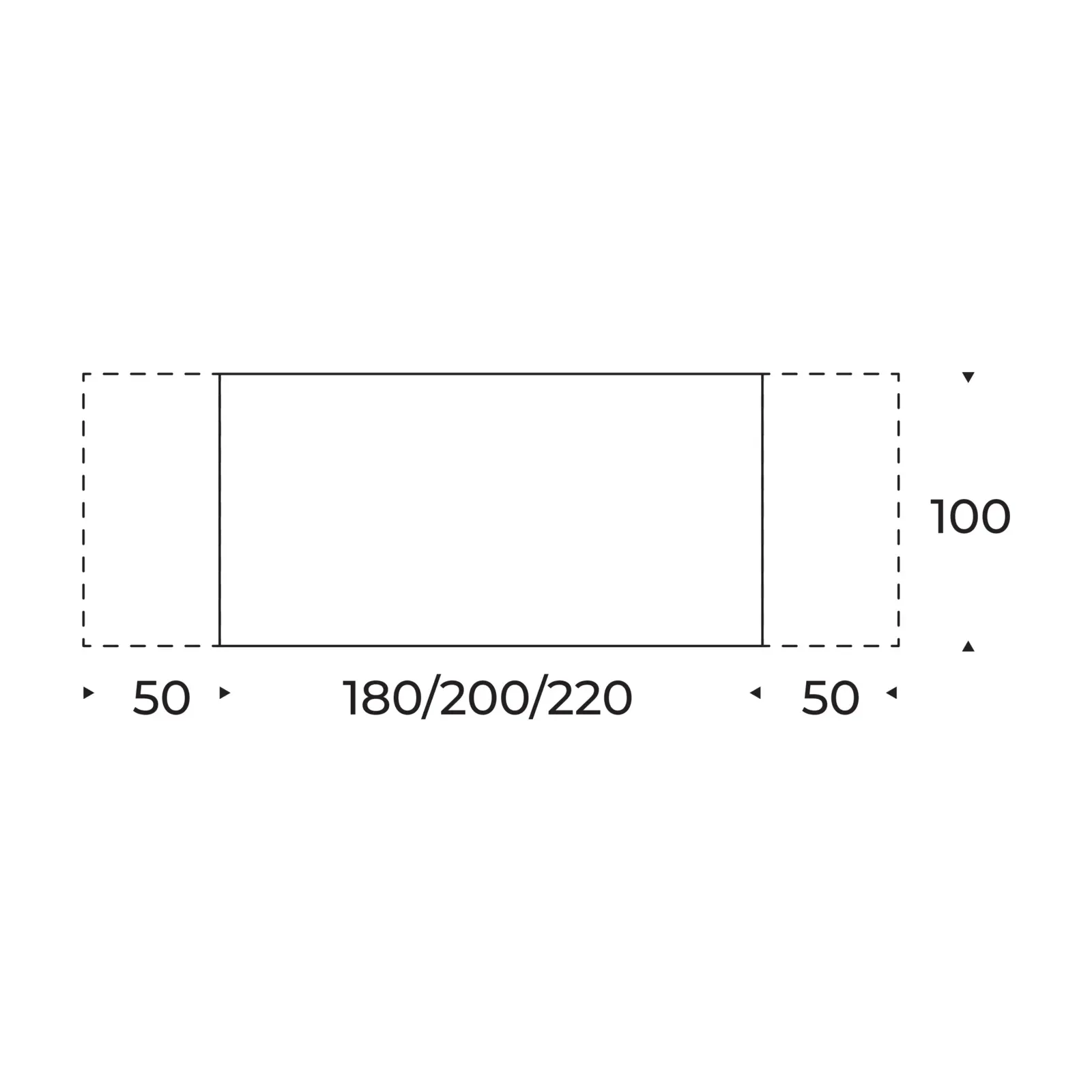 - 220x100 cm (+2x50 cm bővíthető)