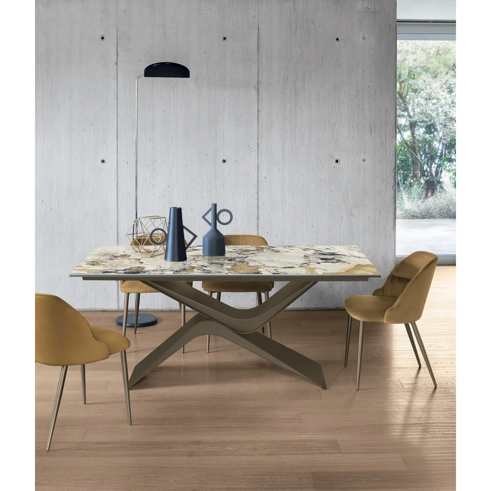 Az Arcus asztal egyszerre tágas és látványos: bővíthető kialakítása több ülőhelyet biztosít, miközben a szoborszerű talp az egész tér fókuszpontjává válik. Ideális választás azoknak, akik szeretik a hatásos, karakteres megoldásokat a mindennapokban és nagyobb társaságok fogadásakor is.