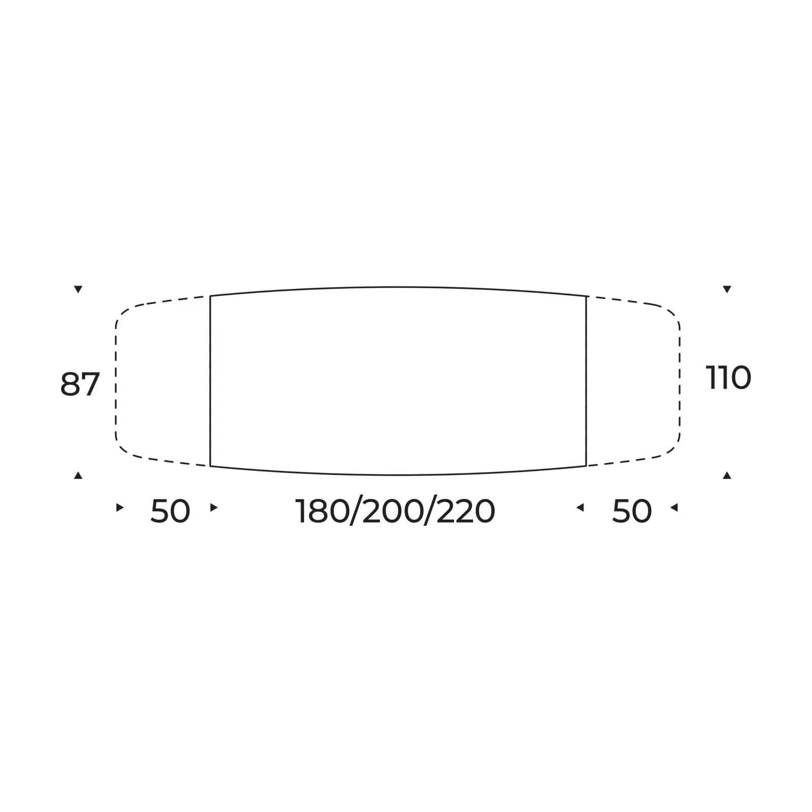 - 220x110 cm (+2x50 cm bővíthető)