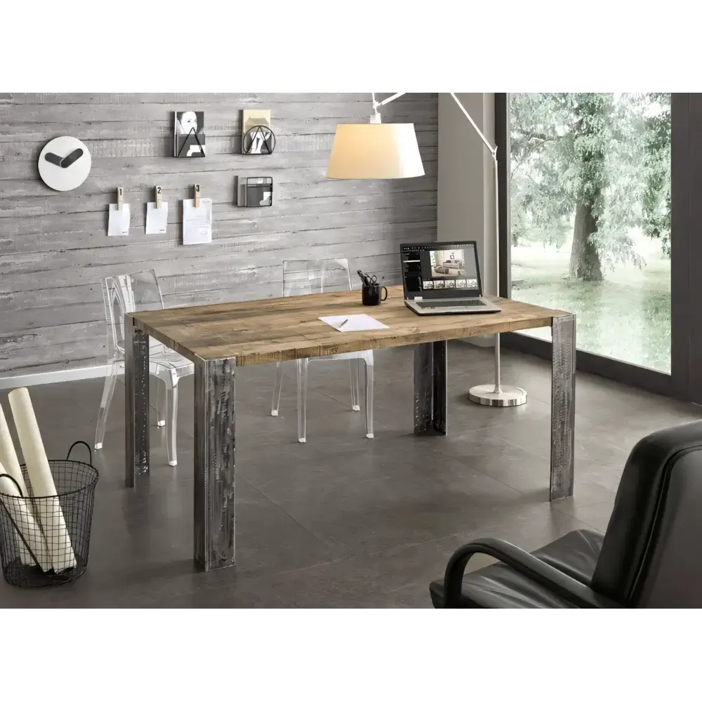 Morello modern stílusú étkezőasztal fém lábakkal, tömör tölgy