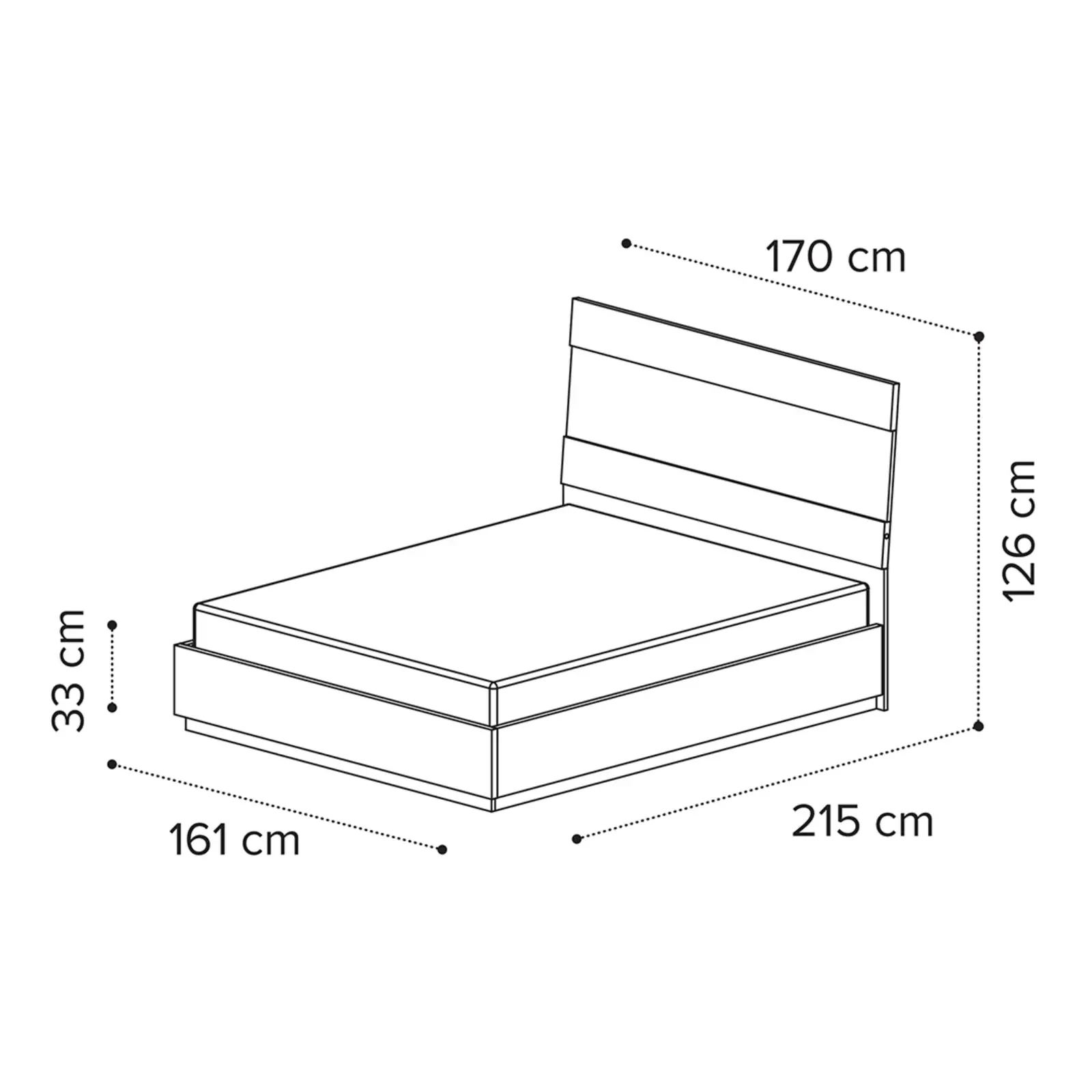 - 160x200 cm-es változat: 170×215×126 cm