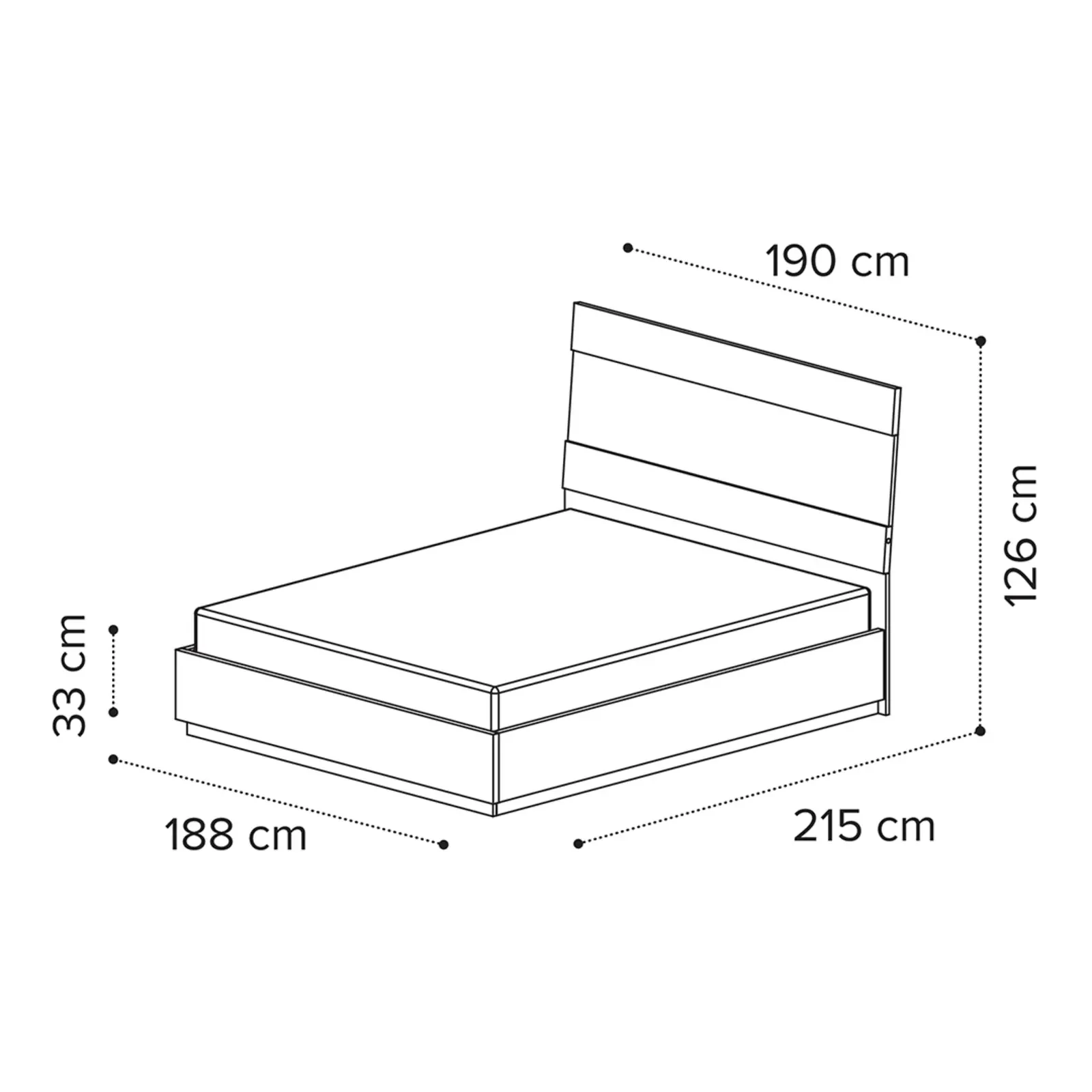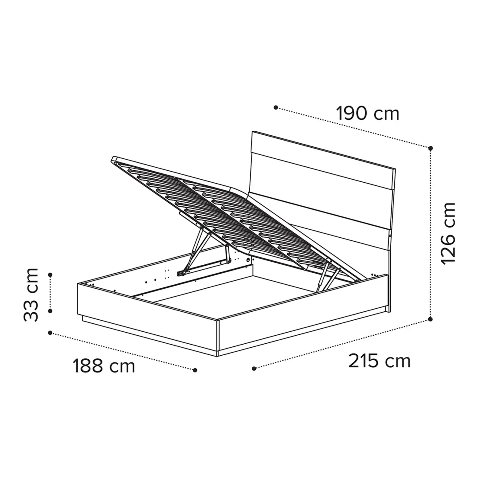- 180x200 cm-es változat: 190×215×126 cm