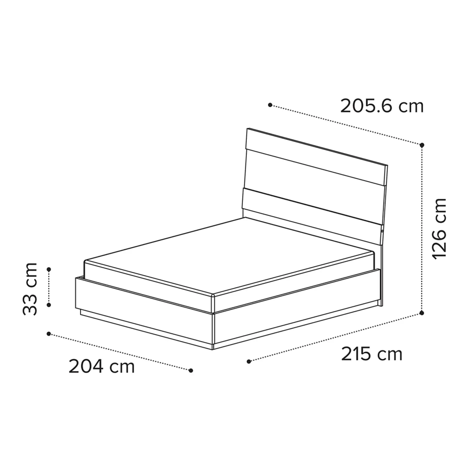 - 195x203 cm-es (KS) változat: 205,6×215×126 cm