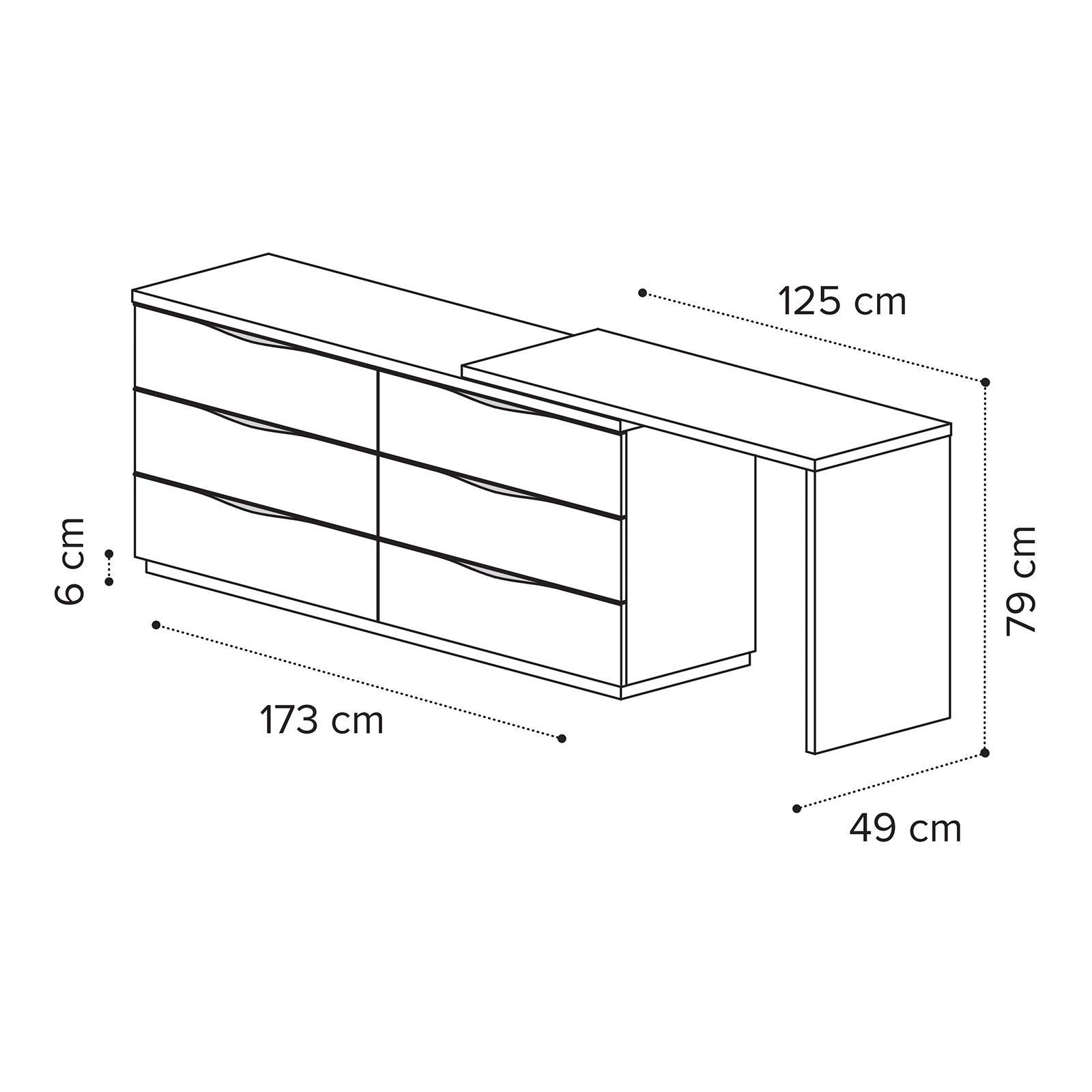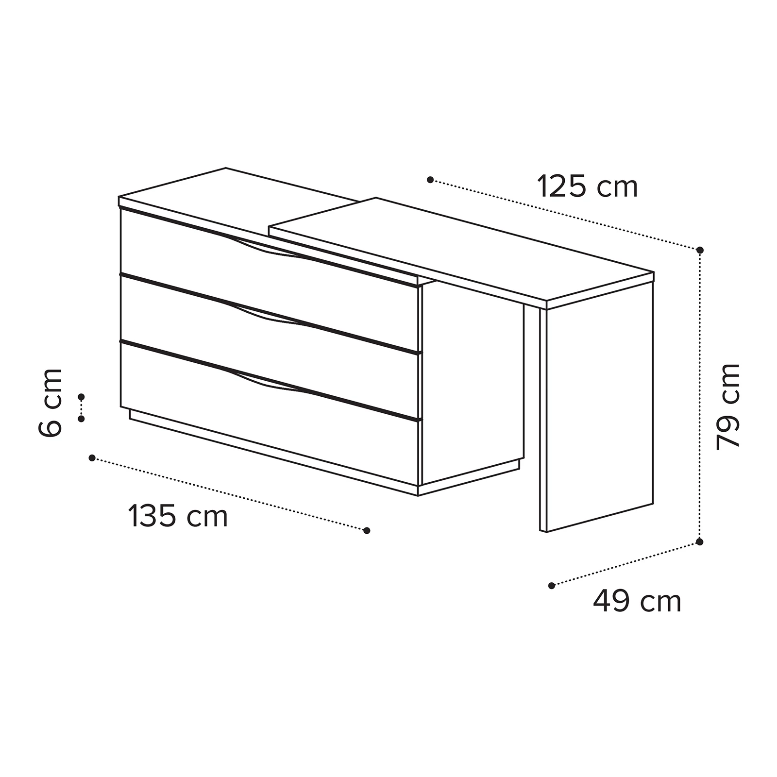 Fehér fésülködő asztal 3 fiókos dupla komóddal – CA Kharma