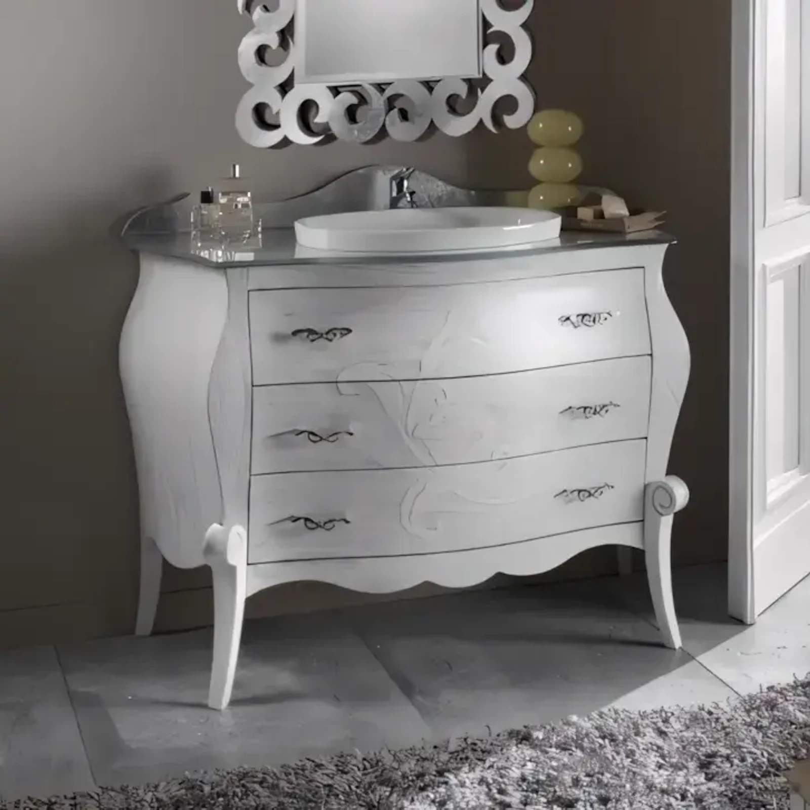 A fürdőszobaszekrény klasszikus stílusú báját kifinomult részletek és letisztult formák keltik életre. A minőségi alapanyagok és a gondos kidolgozás az Ön fürdőszobájába is luxus életérzést hoznak, hogy minden nap egy kis eleganciával kezdődhessen.