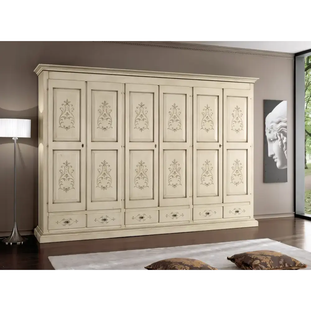 Morello rusztikus stílusú gardróbszekrény, 6 ajtós, 6 fiókkal