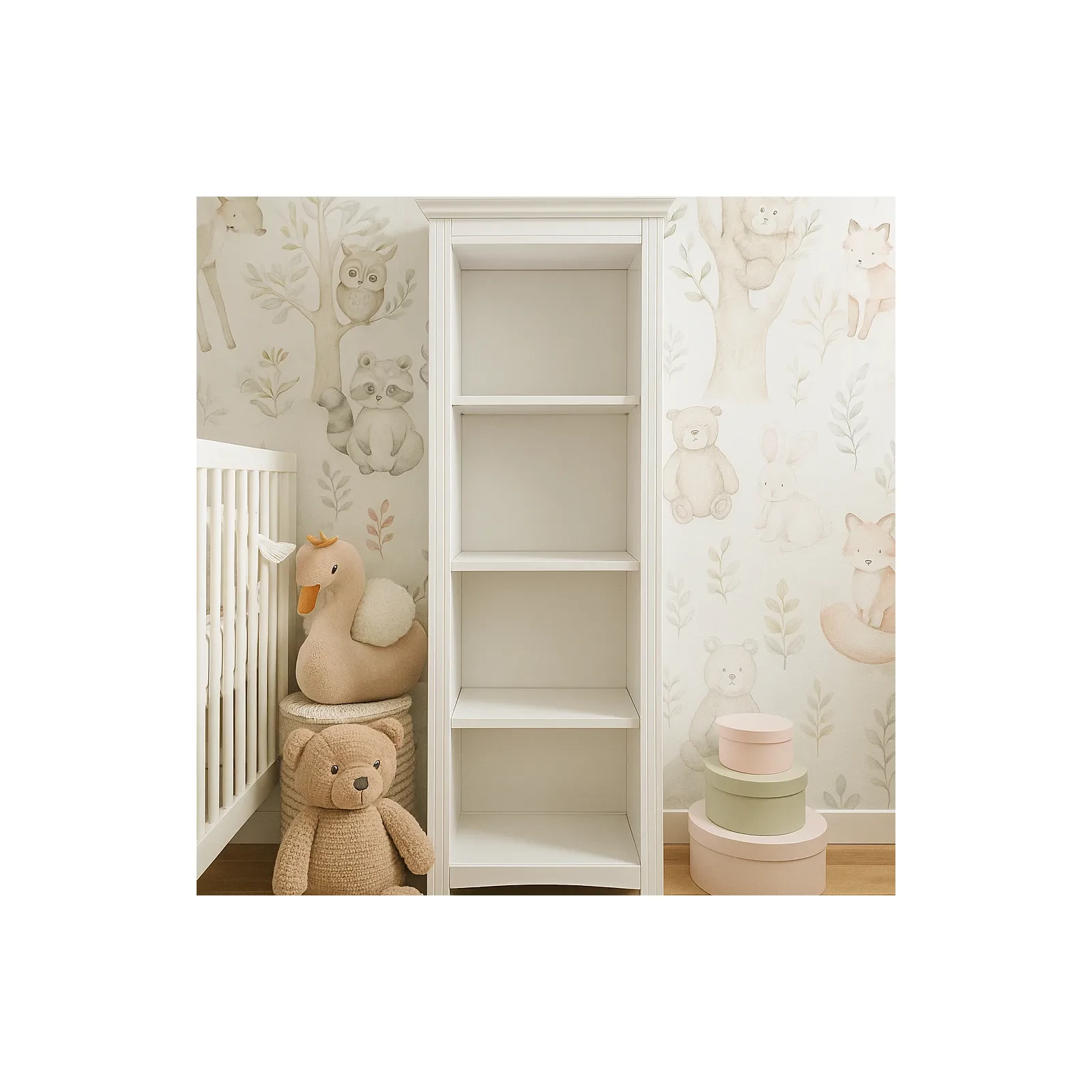 A Jolie könyvespolc időtálló, letisztult formavilágával és fehér színével tökéletesen illeszkedik világos, nyugodt hangulatú enteriőrökbe. Tágas tárolórészeinek köszönhetően ideális babaruhák, játékok vagy könyvek rendszerezésére.