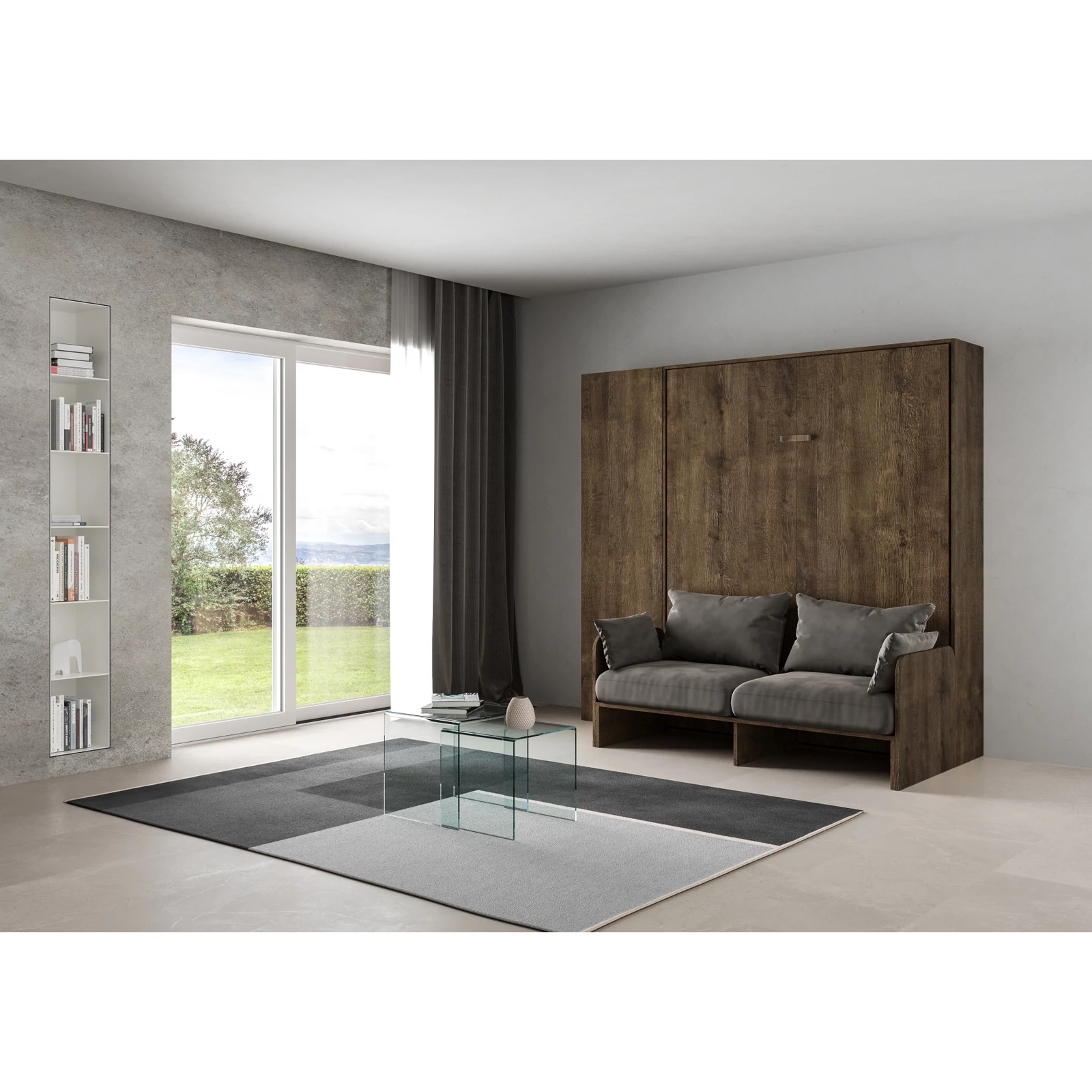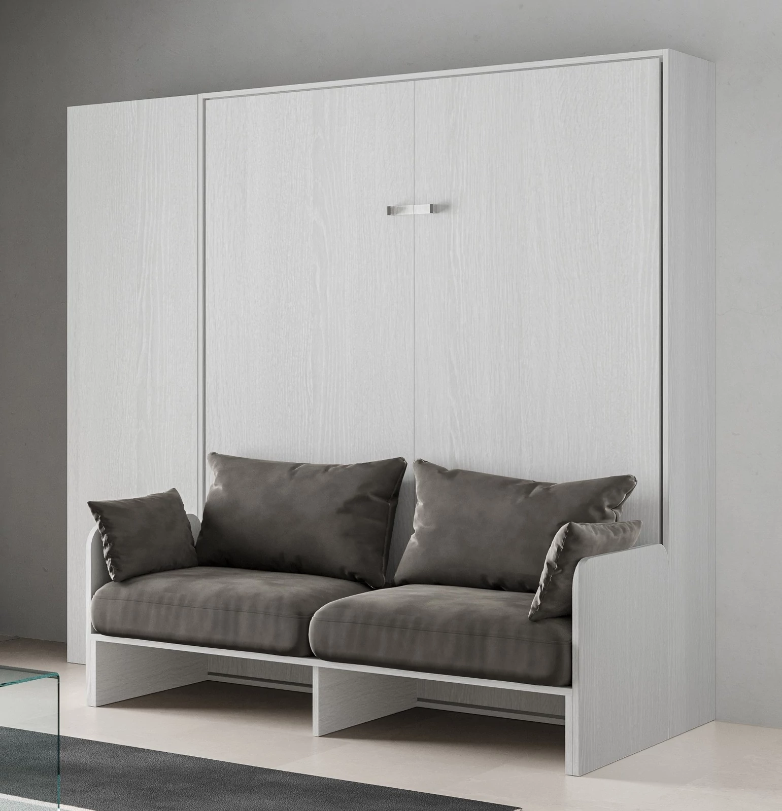 A Kentaro Sofà összecsukható szekrényágy és az Isoka oszlopos szekrény együtt egy modern és eredeti összeállítást alkotnak, mely tökéletesen illeszkedik a kis terekhez. Zárt állapotában egy dizájnos kanapéként használható, kinyitva viszont ugyanolyan kényelmet kínál, mint egy hagyományos ágy. A szekrény három belső polccal rendelkezik, melyek közül az egyik fix, a többi pedig igény szerint mozgatható. A szekrény ajtaja balra vagy jobbra nyíló is lehet, attól függően, hogy az ágy melyik oldalára szereljük. A szekrény ajtaját gázrugós nyitó-záró mechanizmussal látták el, melyet egy finom érintéssel aktiválhatunk.