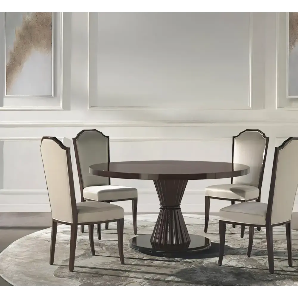 Ezt az étkezőasztalt az olasz dizájn és a klasszikus stílus harmóniája teszi a hétköznapi és az ünnepi pillanatok méltó helyszínévé. Finom vonalak, gazdag felületkezelés és minőségi fafelületek – így találkozik az étkezőben a tradíció és az elegancia. Egy ilyen asztal mellett minden étkezés különleges élménnyé válik.
