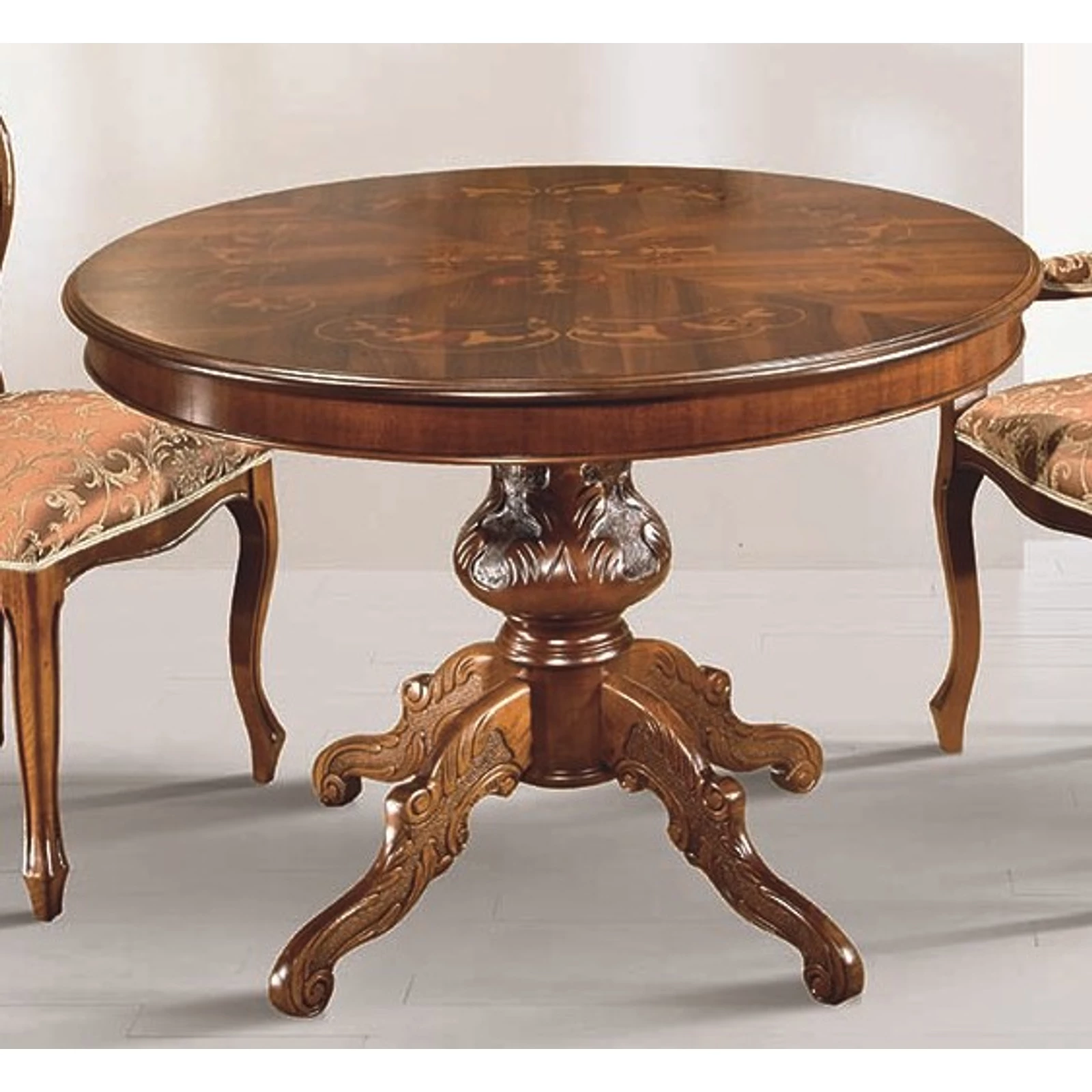 Mobilsedia Kerek étkezőasztal intarziás fedlappal