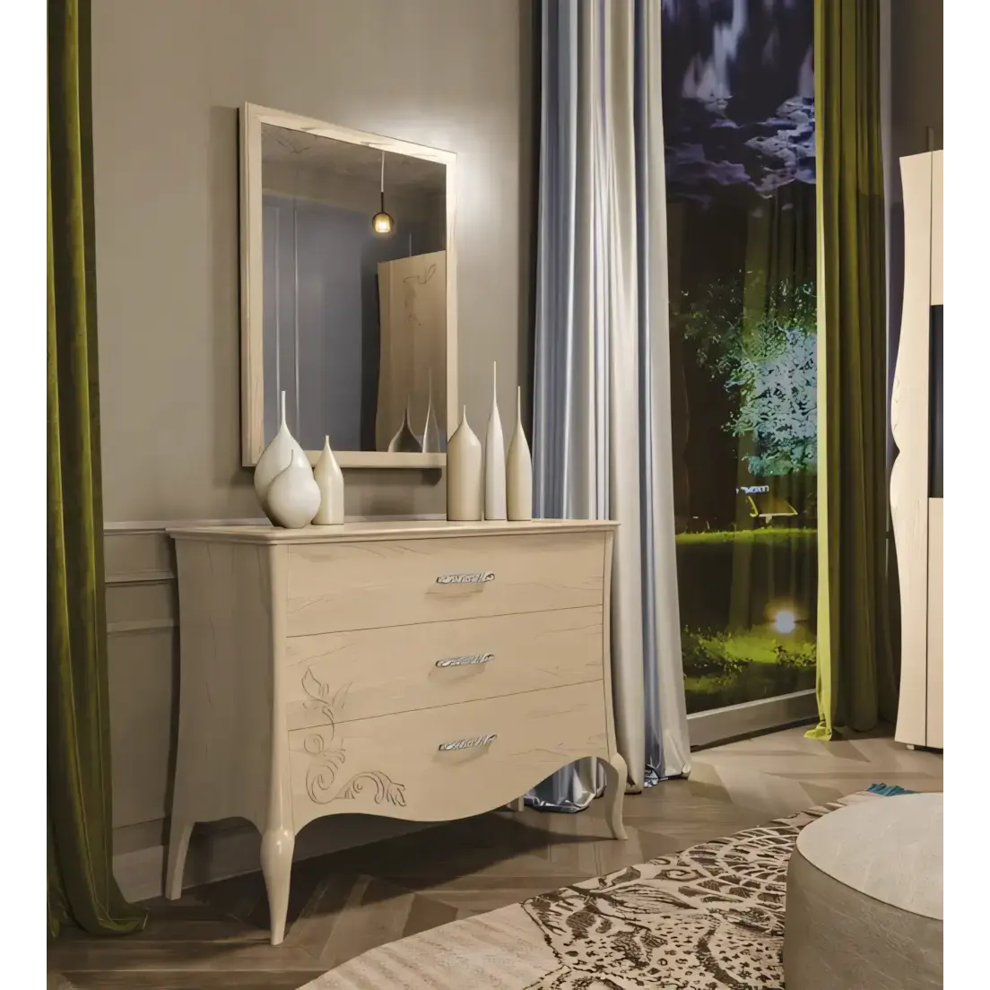 Miért válassza ezt a szettet? Ez a komódszett tökéletesen ötvözi a luxust és a funkcionalitást. A romantikus, gazdag vonalvezetés és a művészi kidolgozás egyensúlyban tartja a klasszikus eleganciát és a modern igényeket – így minden reggel különleges élménnyé válik otthonában.