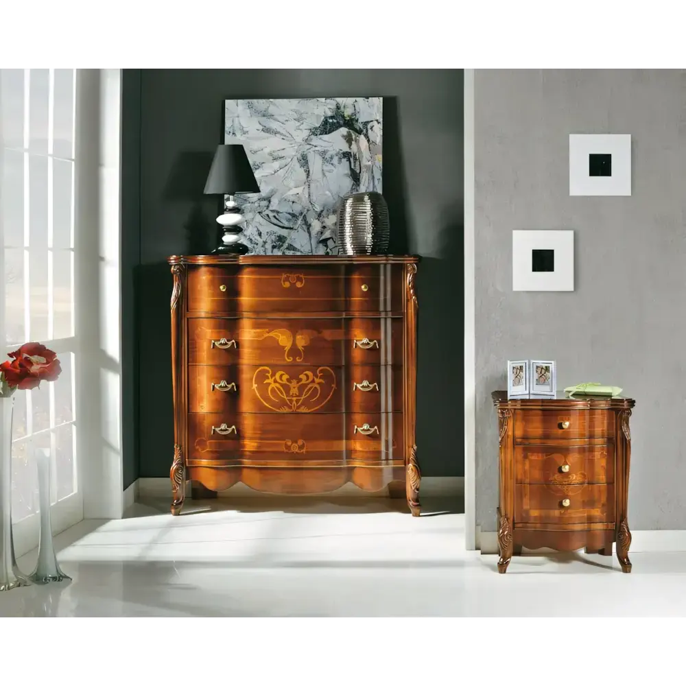 Morello klasszikus stílusú komód 2 db éjjeliszekrénnyel, intarziás