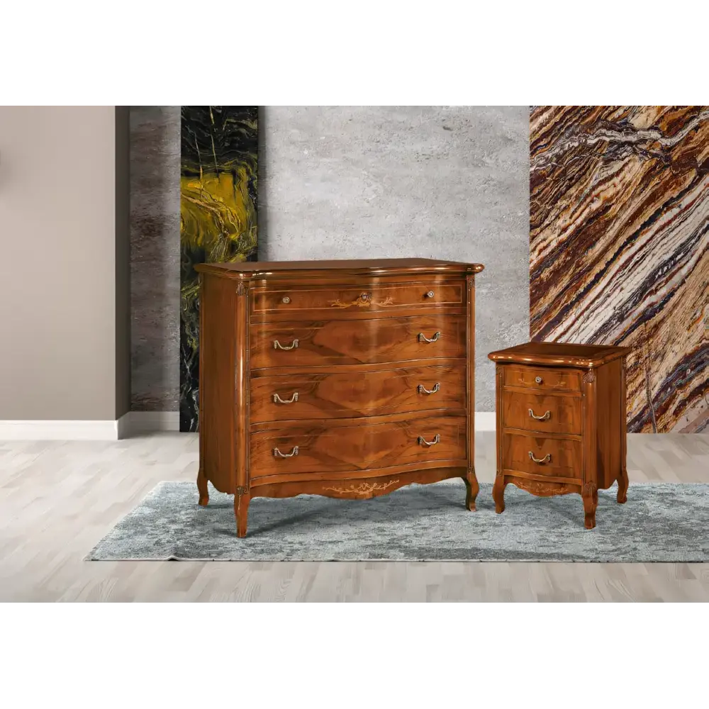Morello klasszikus stílusú komód 2 db éjjeliszekrénnyel, intarziás