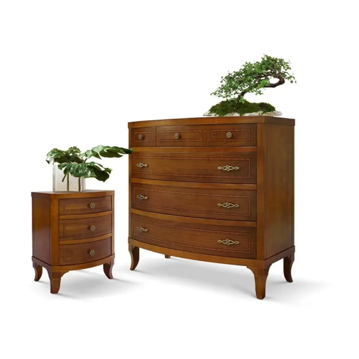 Morello klasszikus stílusú komód 2 db éjjeliszekrénnyel, intarziás