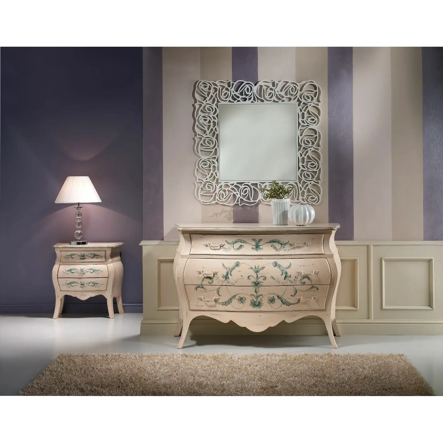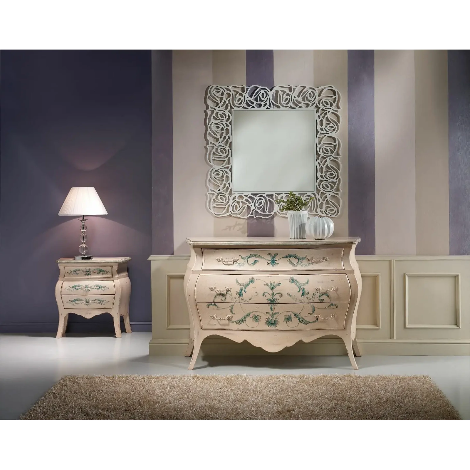 Miért válassza ezt a szettet? Ez a komódszett tökéletesen ötvözi a luxust és a funkcionalitást. A romantikus, gazdag vonalvezetés és a művészi kidolgozás egyensúlyban tartja a klasszikus eleganciát és a modern igényeket – így minden reggel különleges élménnyé válik otthonában.