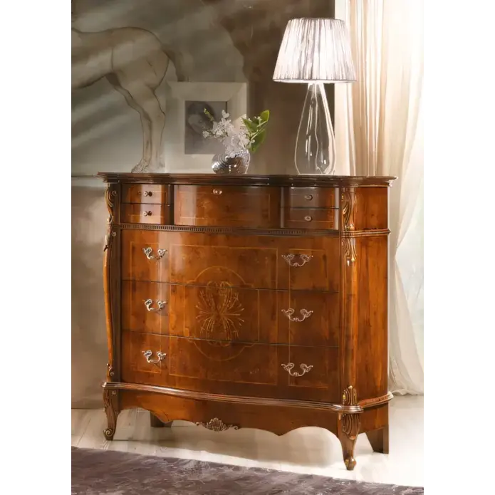 Ezt a komódot elegáns formák és gazdag díszítések teszik a hálószoba egyik legszebb darabjává. A klasszikus stílus időtálló szépsége és a prémium minőségű anyaghasználat a Morello olasz dizájnjának legjavát tükrözi.