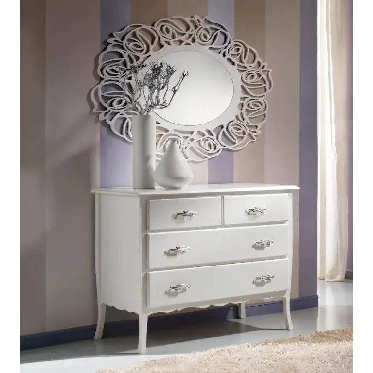 Ezt a komódot elegáns formák és gazdag díszítések teszik a hálószoba egyik legszebb darabjává. A klasszikus stílus időtálló szépsége és a prémium minőségű anyaghasználat a Morello olasz dizájnjának legjavát tükrözi.
