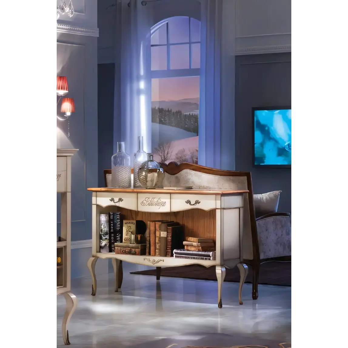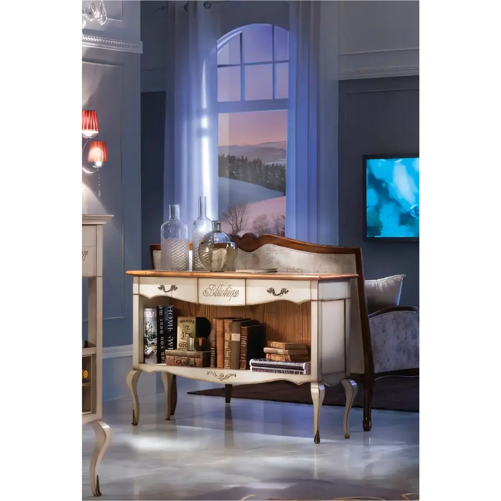 Morello klasszikus stílusú könyvespolc 3 fiókkal