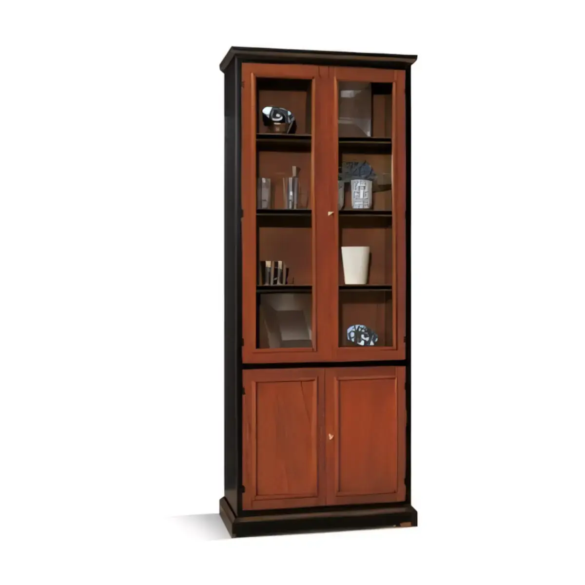 Morello klasszikus stílusú könyvespolc elem 4 polccal, 2 üvegajtós (4/4), 2 ajtós alsó tárolórésszel