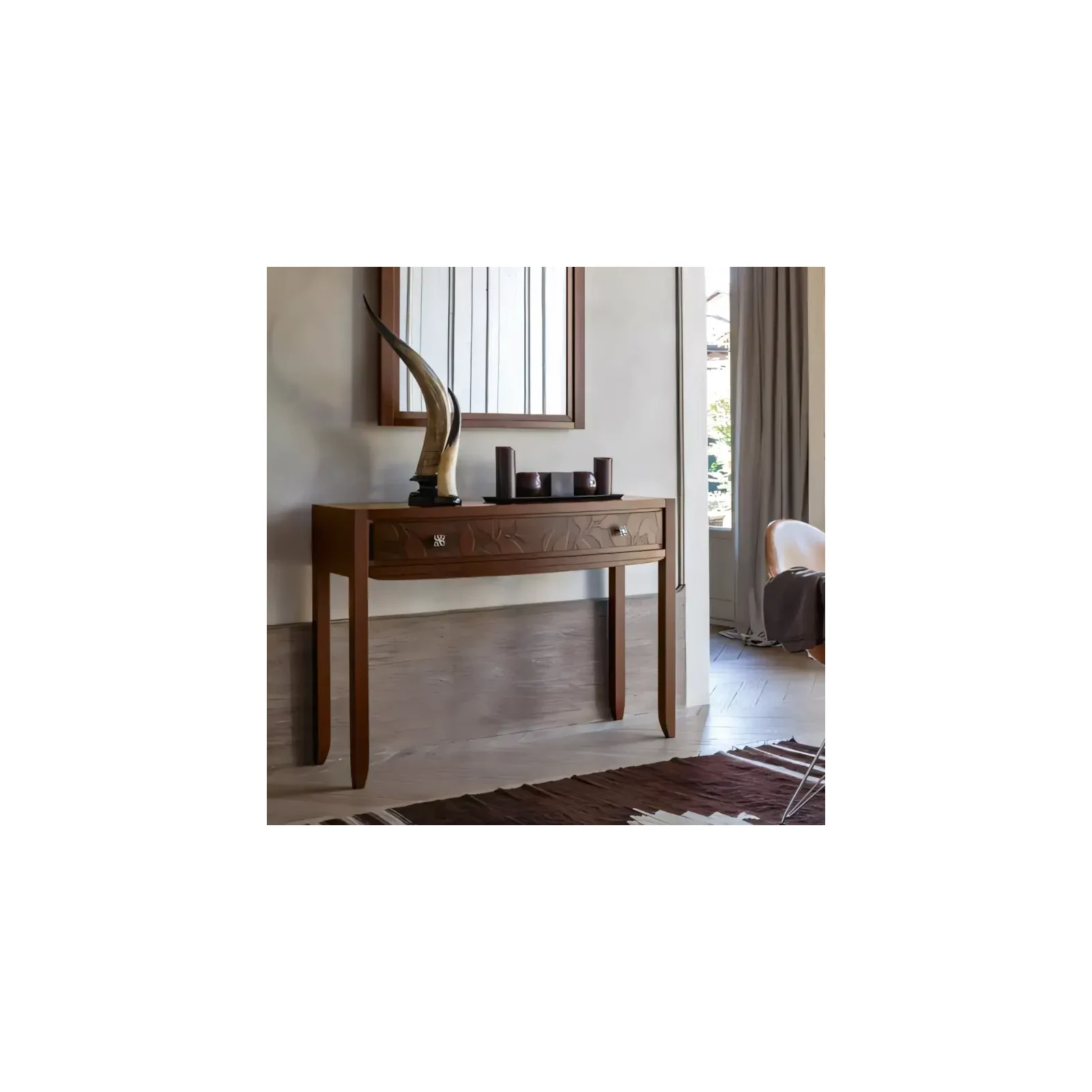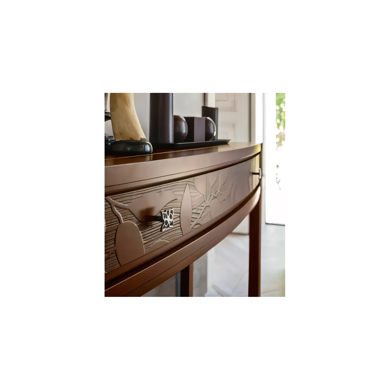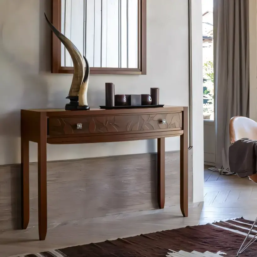 Morello modern stílusú konzolasztal 1 fiókkal, levélmintás díszítéssel
