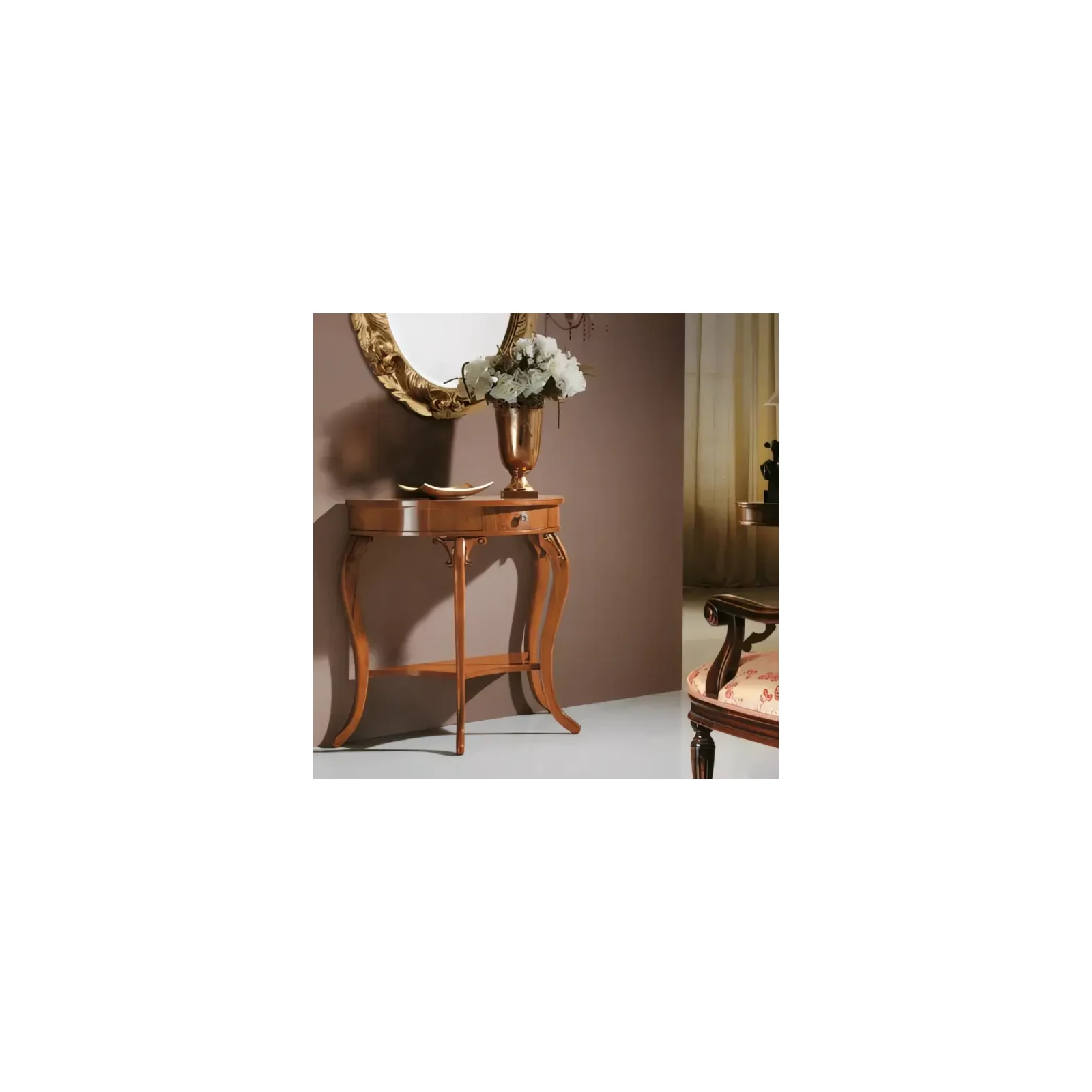 Ezt a konzolasztalt elegáns vonalvezetés és gazdag díszítés teszi a klasszikus nappali vagy étkező stílusos kiegészítőjévé. A Morello olasz hagyományai minden részletben visszaköszönnek, így a tér atmoszférája is új szintre emelkedik.