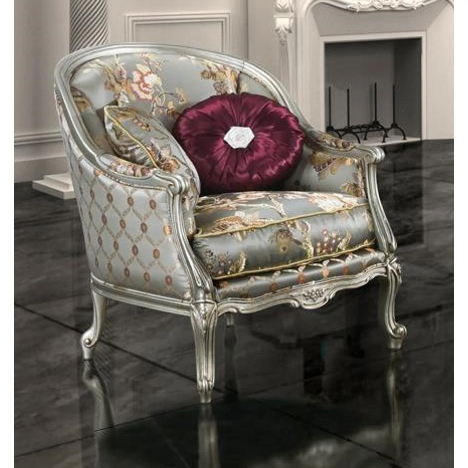 Finom és könnyed vonalak, melyek egy faragott keretbe vannak foglalva, valamint egy jellegzetes kárpitozás, eredeti és vonzó színvilággal.
