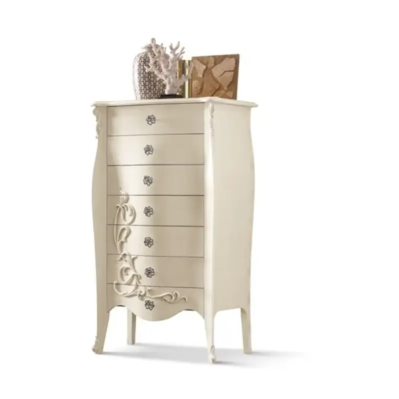 Ezt a komódot elegáns formák és gazdag díszítések teszik a hálószoba egyik legszebb darabjává. A klasszikus stílus időtálló szépsége és a prémium minőségű anyaghasználat a Morello olasz dizájnjának legjavát tükrözi.