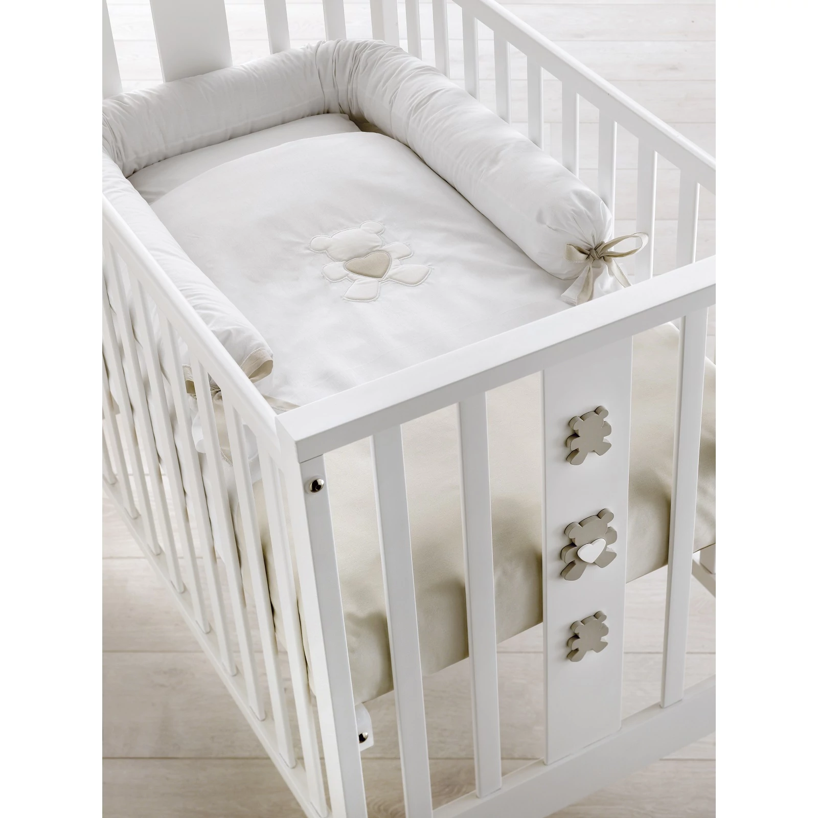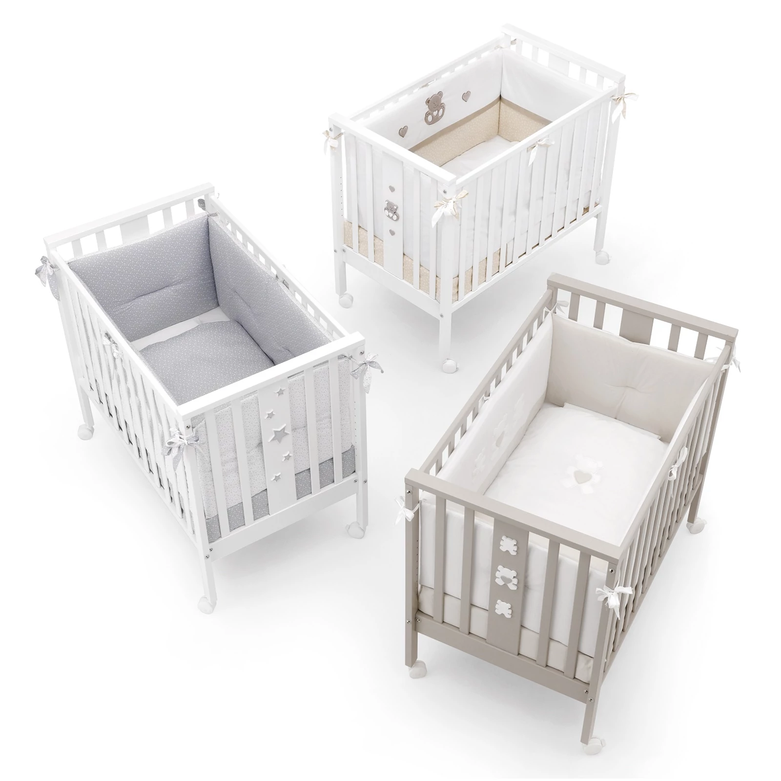 A Mini termékcsalád szövetválasztékában választhatunk a különböző típusú, Mini Stelline, Mini Molly és Mini Charly textilváltozatok közül, melyekhez hozzátartozik: a) egy 100x60x9 cm méretű, levehető huzattal rendelkező aloe matrac, egy párna és párnahuzat, egy lehúzható paplan és egy négyoldalas védőhuzat a kiságy oldalrácsaihoz, melyek közül az egyik oldal különálló, így biztosítva a felnőttágyhoz való illesztést, vagy b) egy kétrészes ágyneműszett és egy kiságyszűkítő-betét az első hónapokra.