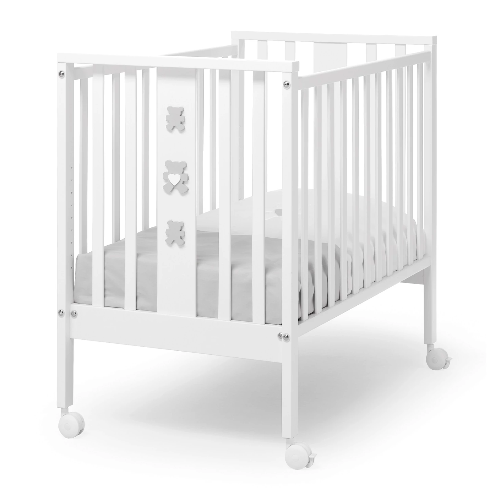 A praktikus állítható rács révén a Mini kiságy 9 különböző magassági beállítást biztosít a matrachoz, így az az igényeknek megfelelően állítható be, kezdve a baba első hónapjaiban igen hasznos magas bölcsőszerű pozíciótól. Ennek a funkciónak köszönhetően ráadásul a kiságy bármilyen típusú felnőttágyhoz igazítható, így biztosítva az együtt alvás örömét.
