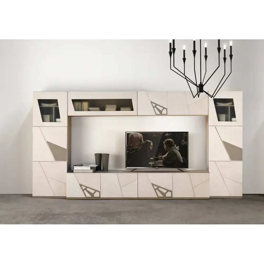 Morello modern stílusú moduláris nappali szekrénysor geometrikus mintás dekorációval