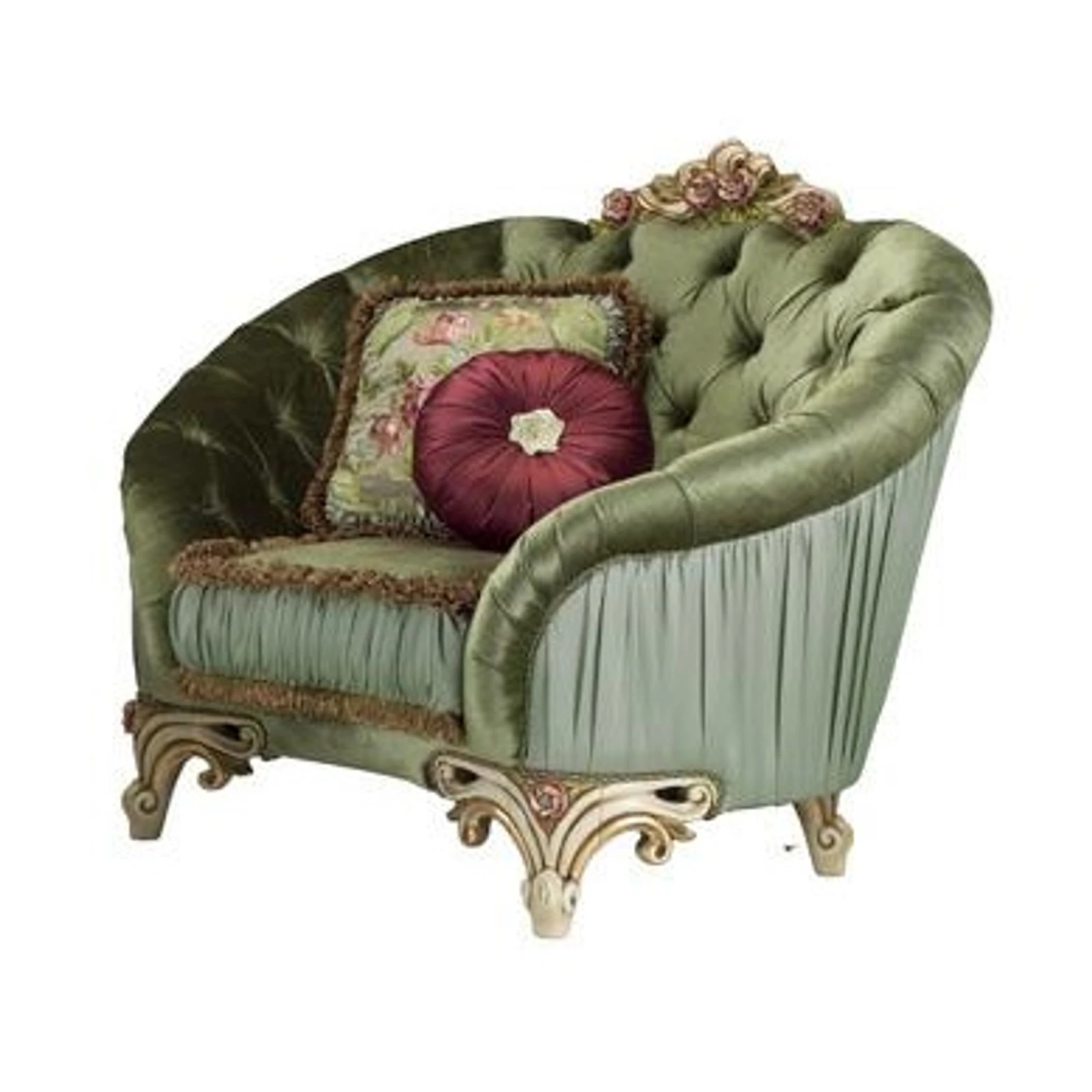 Ezt az egyedülálló, mégis klasszikus darabot kanyargós formái, különböző méretűvé alakíthatósága, valamint különleges kárpitozása teszik igazán bájosság és becsessé, mindez pedig a kézzel készített, a szövethez színben illeszkedő díszítések egészítik ki.