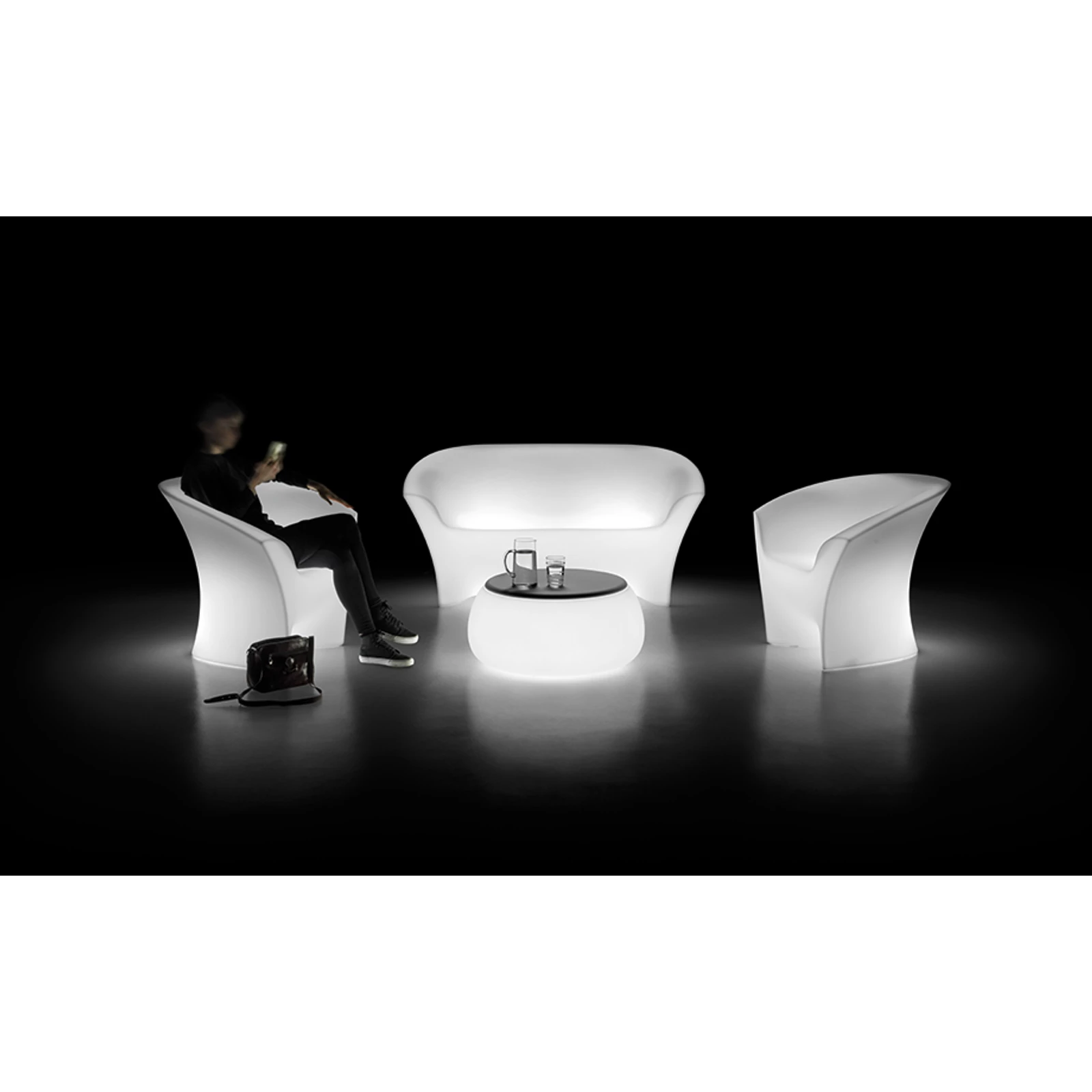 Kényelmes és modern vonalvezetésű fotel, mely a forma és a praktikusság tökéletes összhangját biztosítja. Kiváló választás elegáns, modern dizájnú terek berendezéséhez. A belső és külső tereket valódi jellemmel ruházza fel. Kisasztallal igazán jól kiegészíthető. Világító változatban is elérhető.