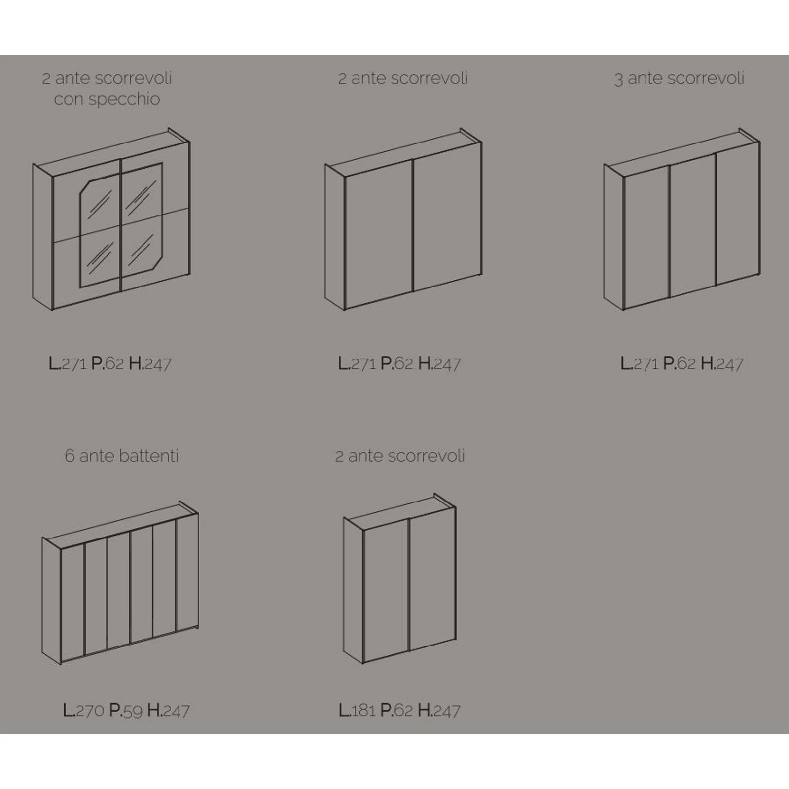 - 2 tolóajtós szekrény: 2710mm x 620mm x 2470mm