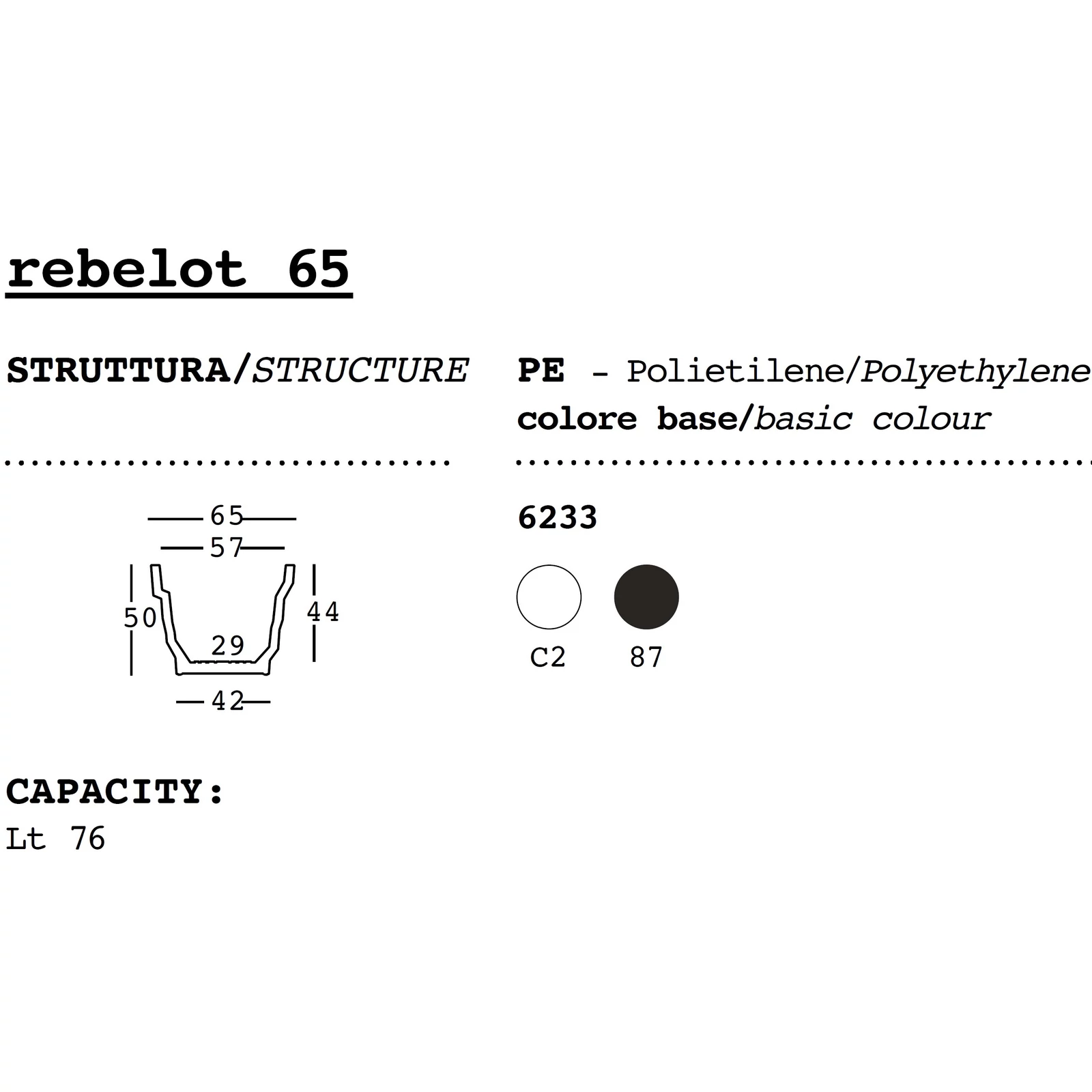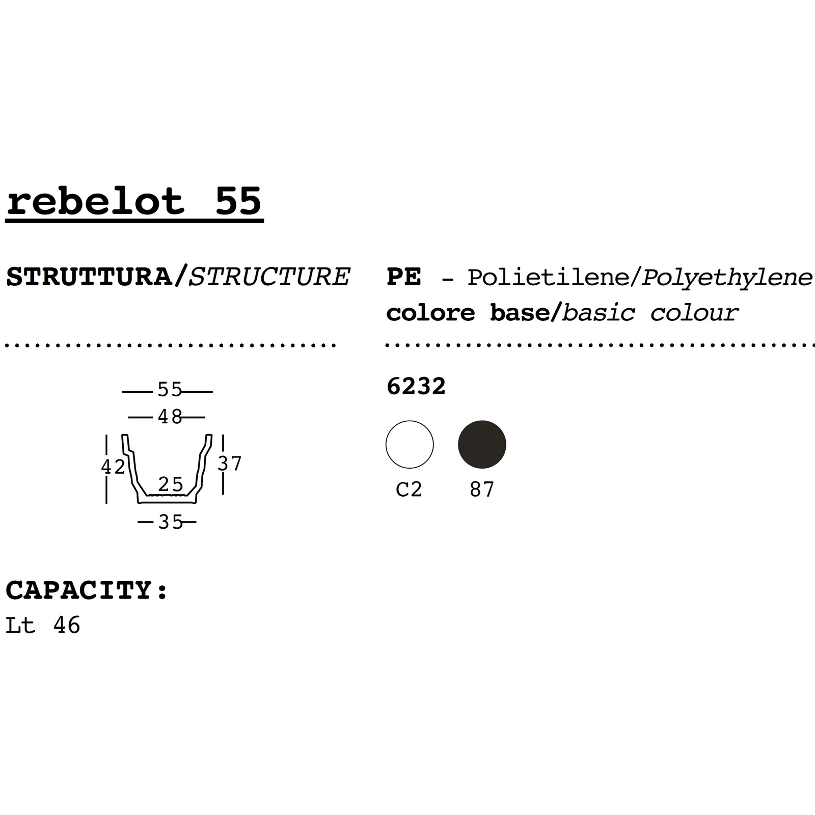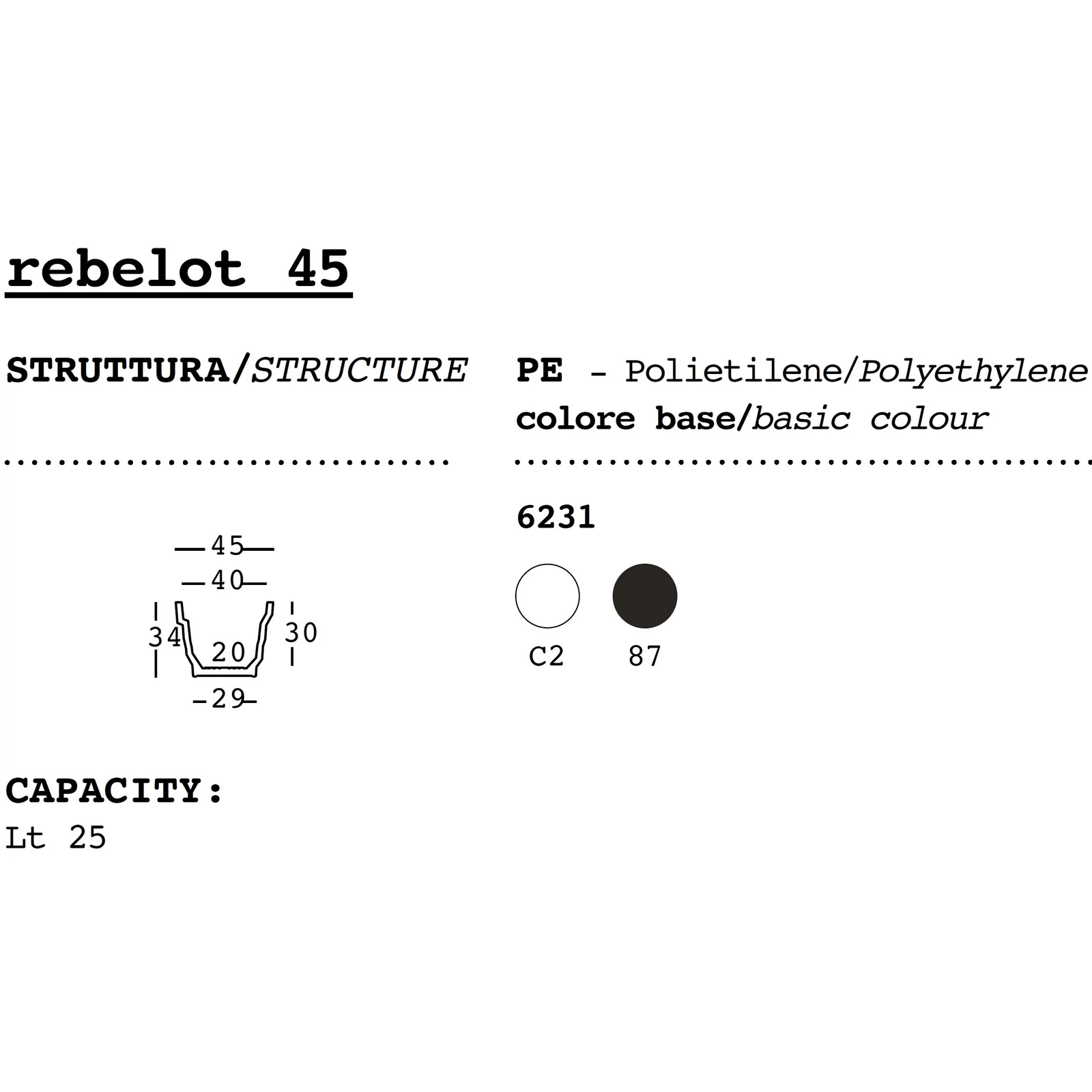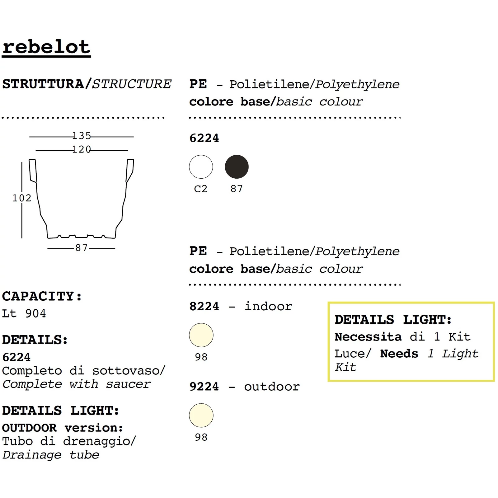 Milánói dialektusban a „rebelot" káoszt jelent, mely kitűnően leírja ezen virágkaspó formájára jellemző stílust. Öt különböző méretben elérhető, így más és más nagyságú növényeket helyezhetünk el bennük, a legnagyobb méret pedig remekül egészít ki bármilyen tágas beltéri vagy kültéri környezetet. Világító változata a lépcsőzetes kialakításnak köszönhetően erőteljes, kontrasztos fény- és árnyékhatásokat hoz létre, melyek dinamikus és barátságos környezetet varázsolnak.